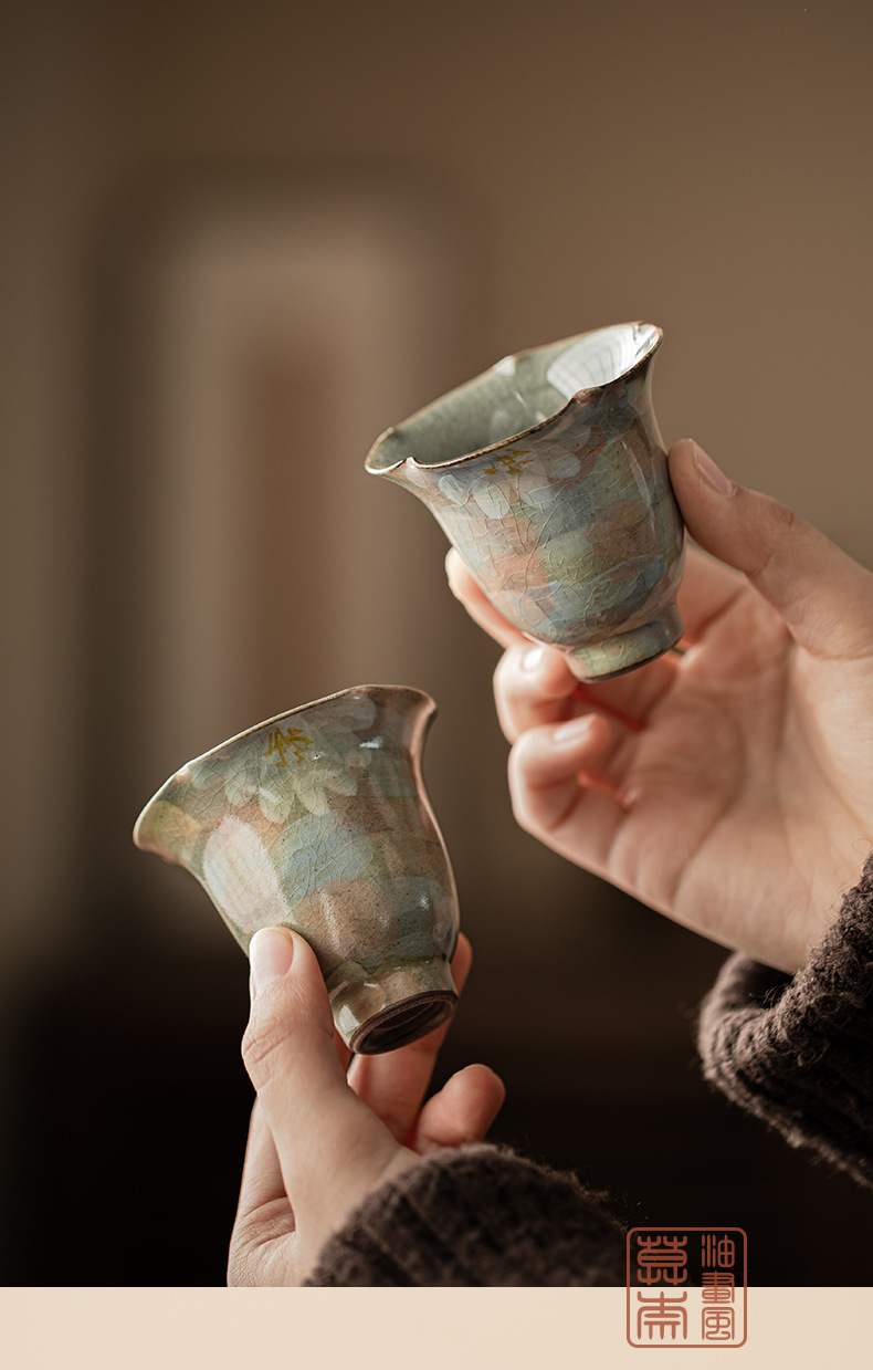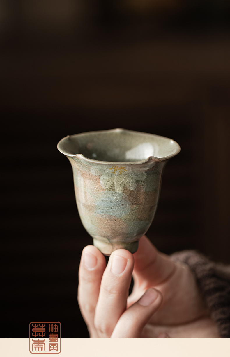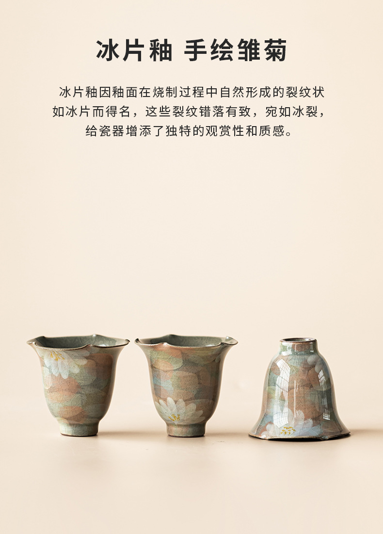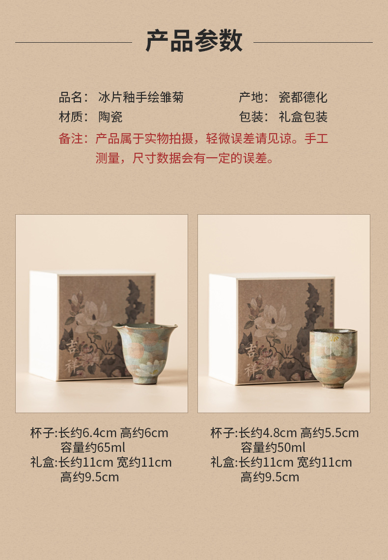 - Men borneol vẽ tay hoa cúc miệng cốc nhỏ tách trà phong cách sơn dầu gốm sứ Kung Fu bộ trà cốc trà quà tặng