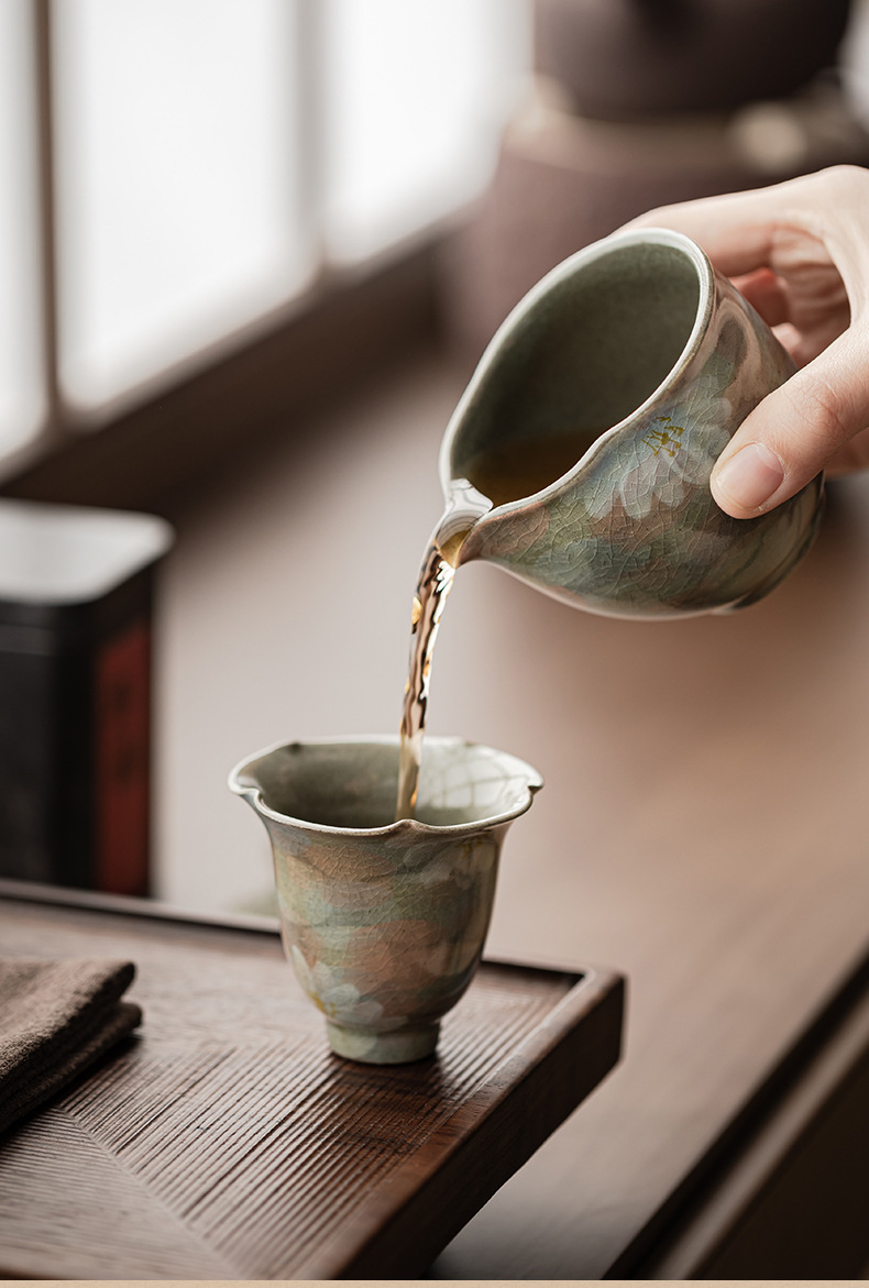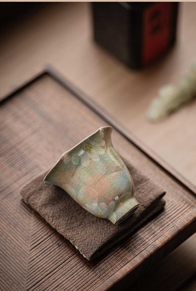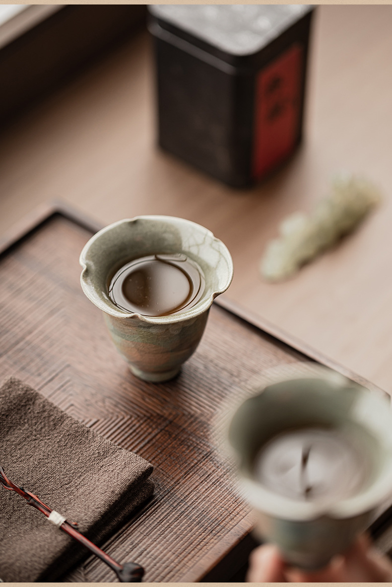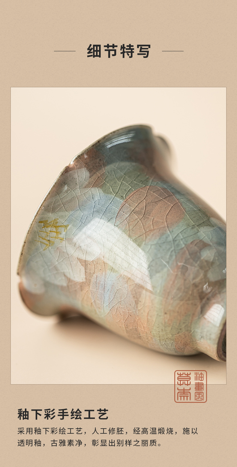 - Men borneol vẽ tay hoa cúc miệng cốc nhỏ tách trà phong cách sơn dầu gốm sứ Kung Fu bộ trà cốc trà quà tặng