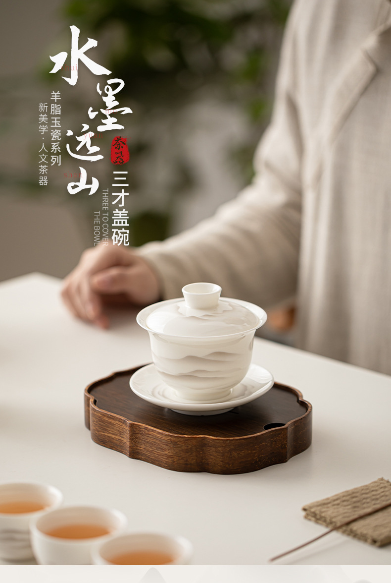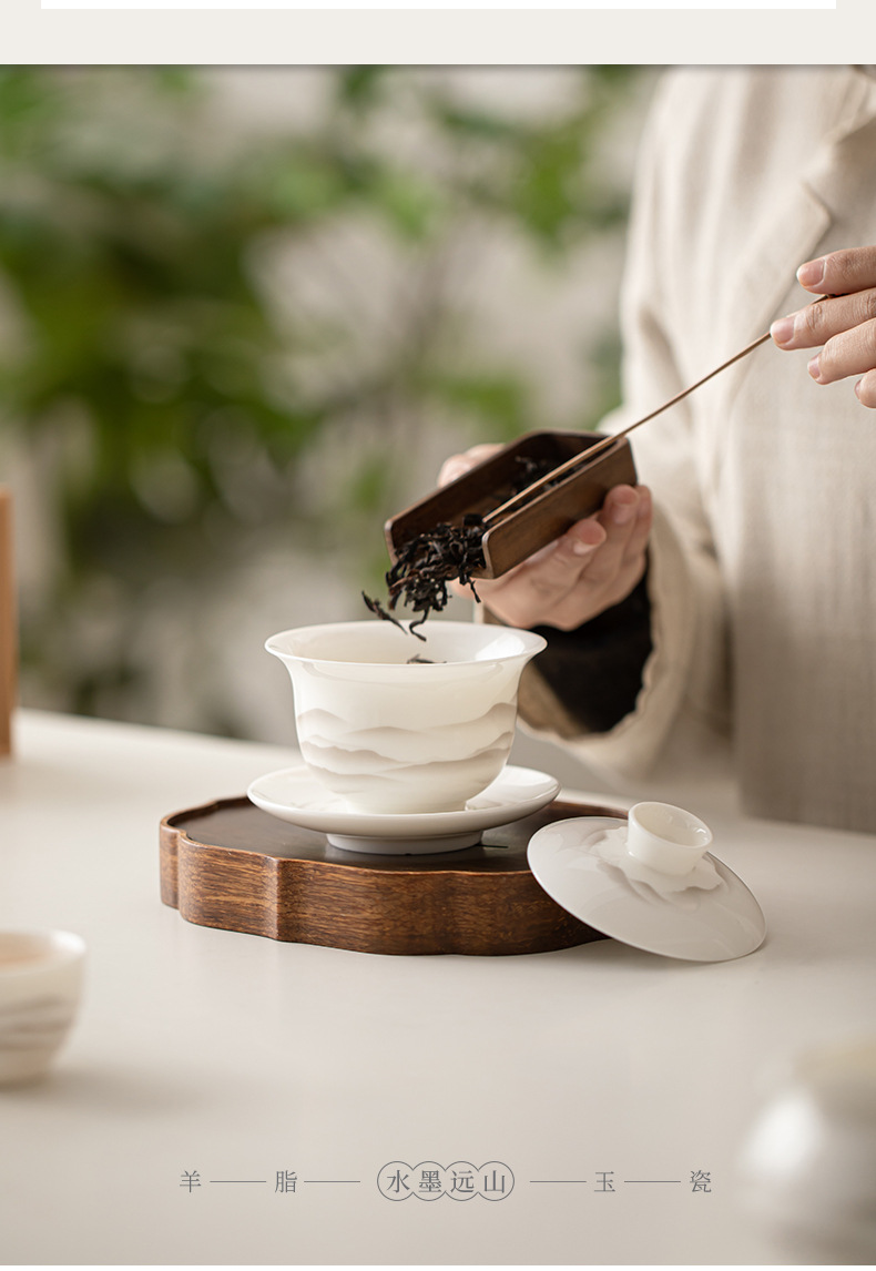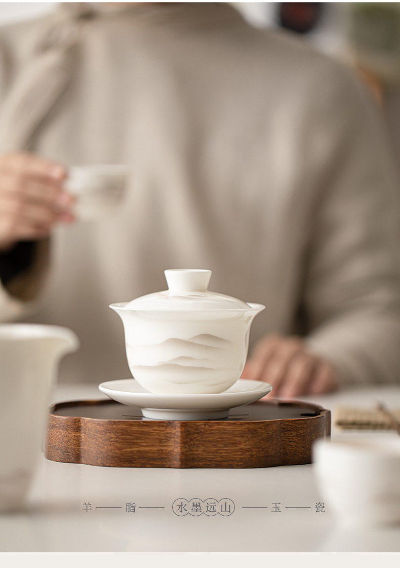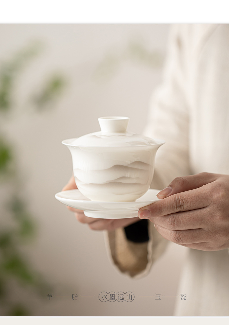 - Mỡ cừu, Ngọc Bích, mực sứ, núi xa, bát có nắp Sancai, bộ trà Kung Fu gốm sứ, bát uống trà, tách trà lớn, dụng cụ pha trà đơn