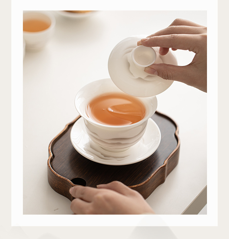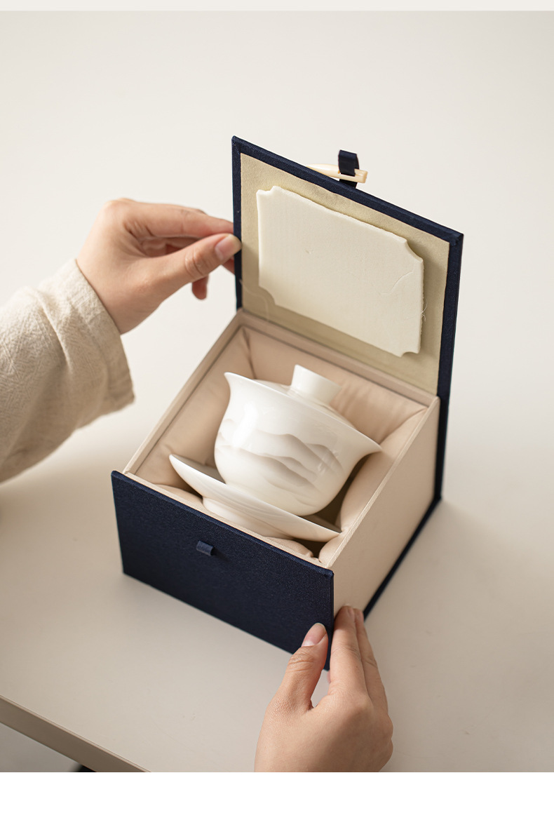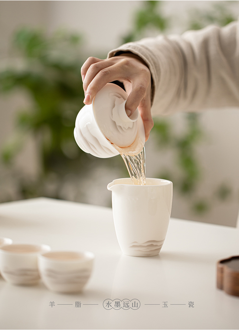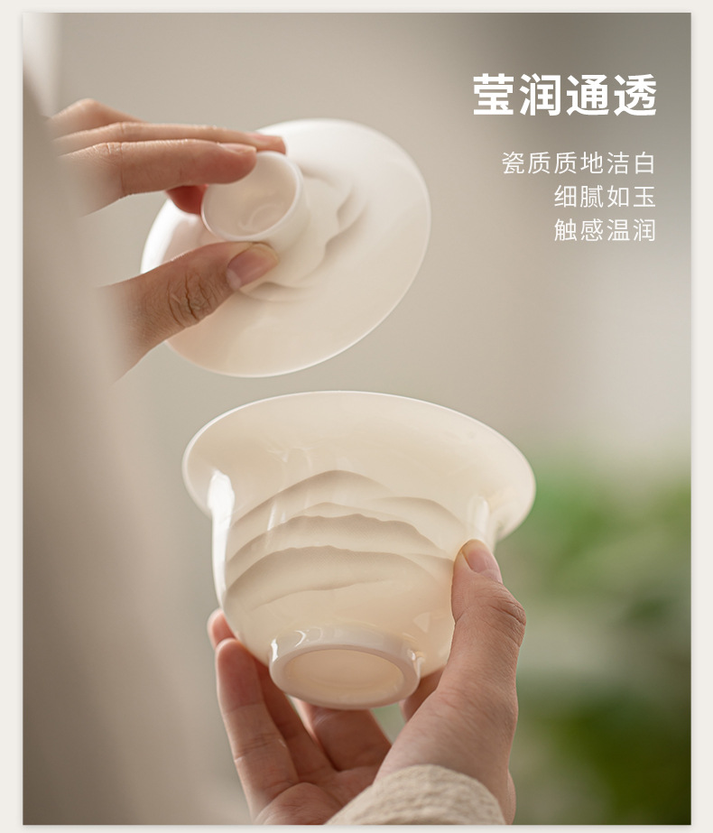 - Mỡ cừu, Ngọc Bích, mực sứ, núi xa, bát có nắp Sancai, bộ trà Kung Fu gốm sứ, bát uống trà, tách trà lớn, dụng cụ pha trà đơn