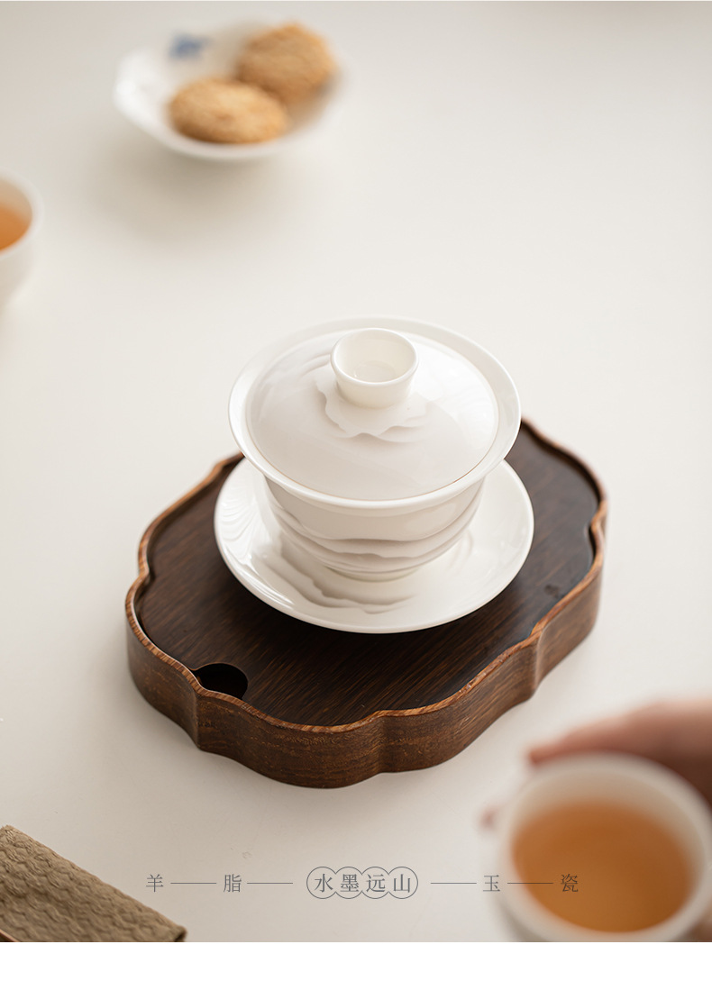 Mỡ cừu, Ngọc Bích, mực sứ, núi xa, bát có nắp Sancai, bộ trà Kung Fu gốm sứ, bát uống trà, tách trà lớn, dụng cụ pha trà đơn