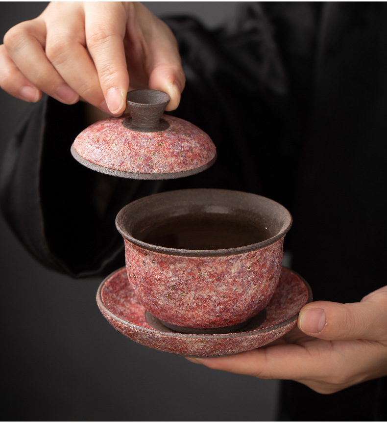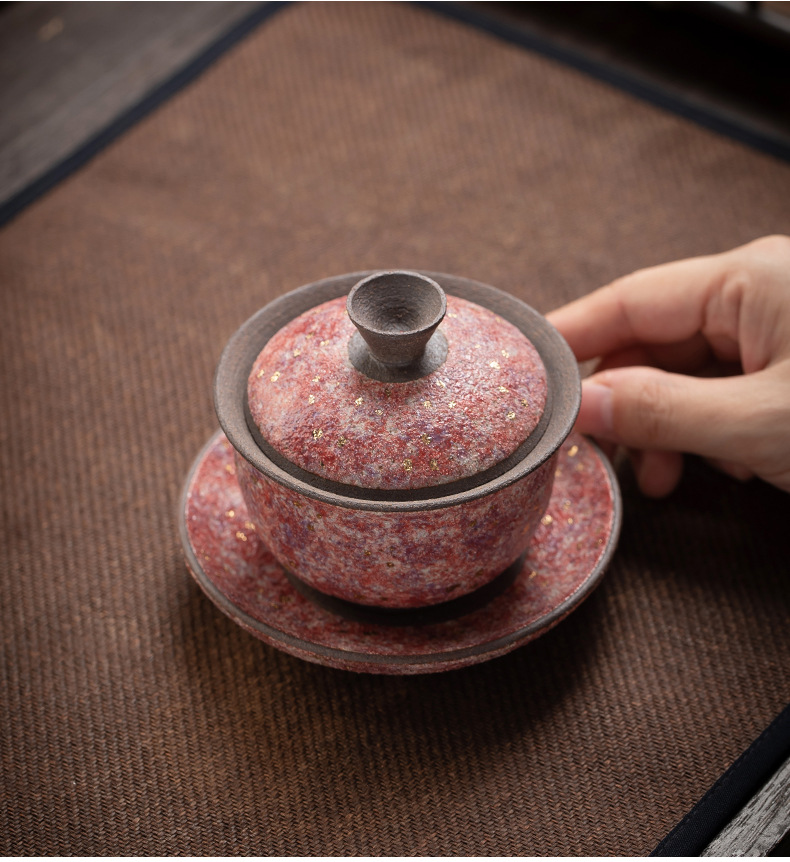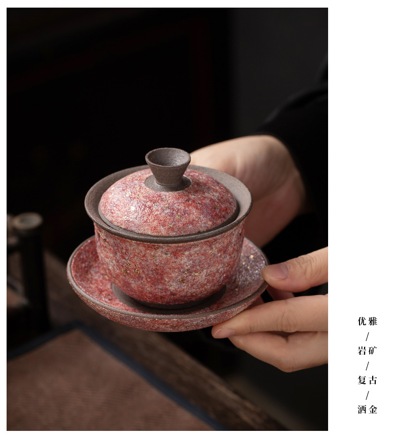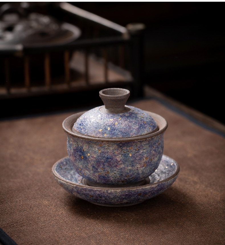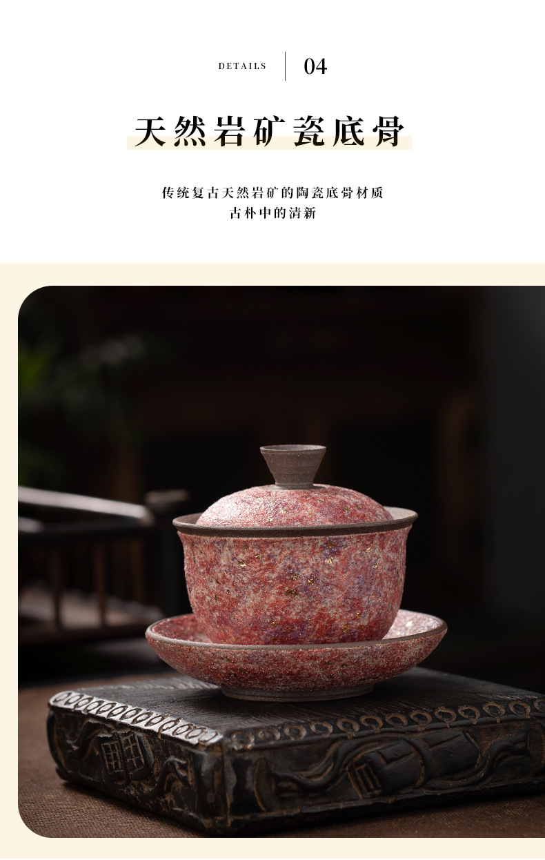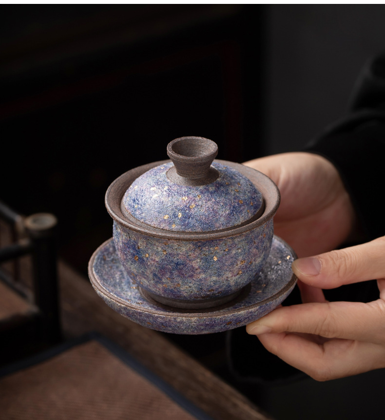 Mỏ đá củi Sancai có thể che bát, cốc trà mỏ đá Jingdezhen có thể che cốc, bộ trà Kung Fu sáng tạo, bát trà chính, dụng cụ pha trà