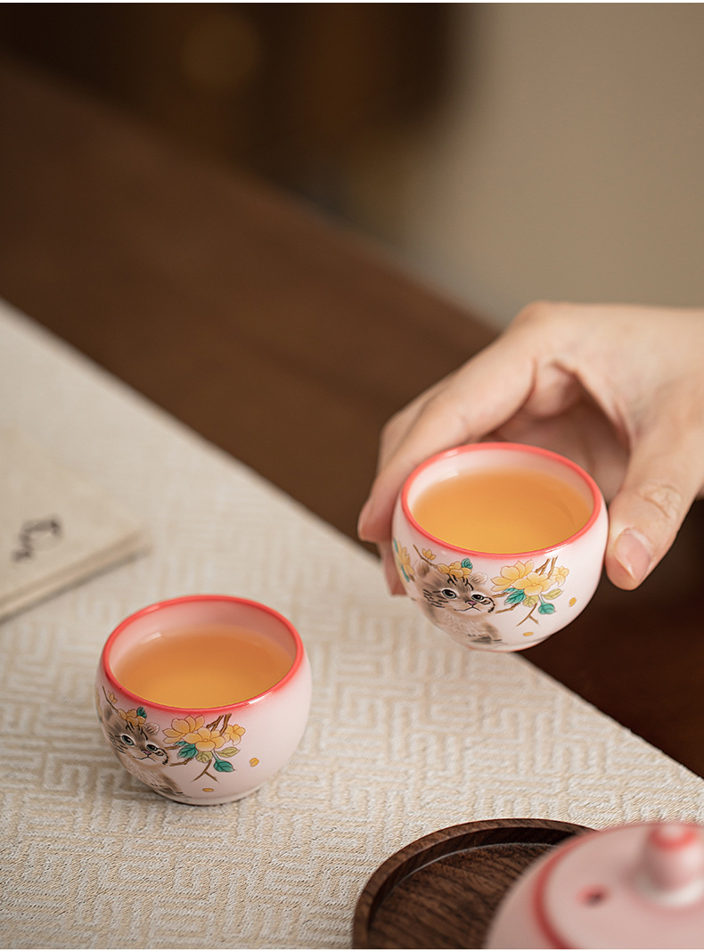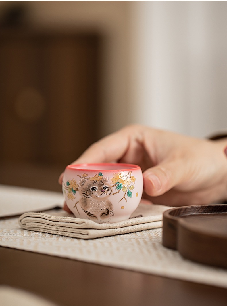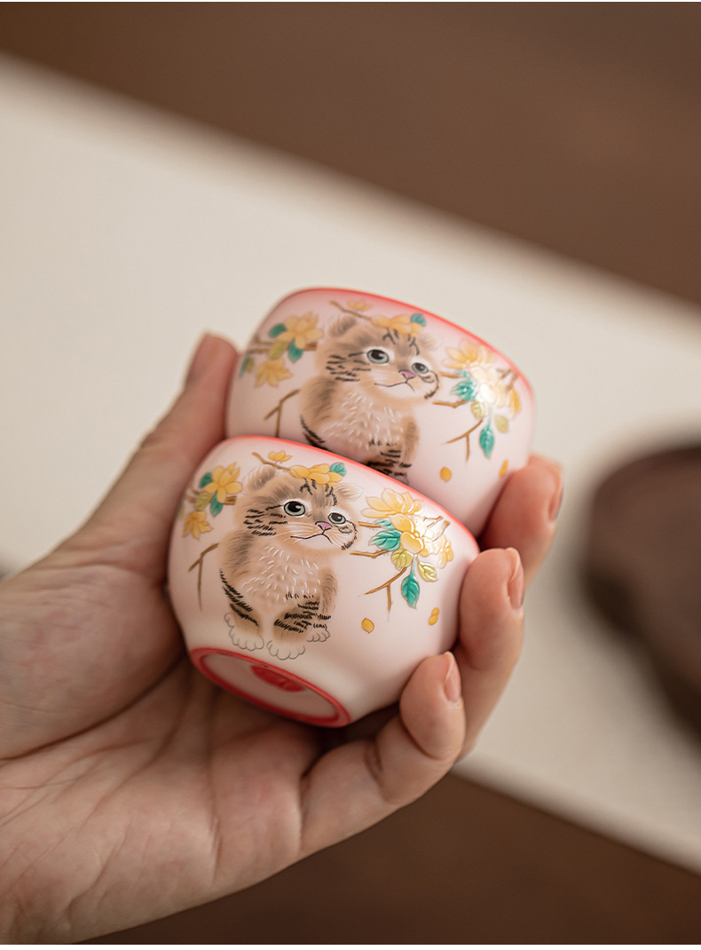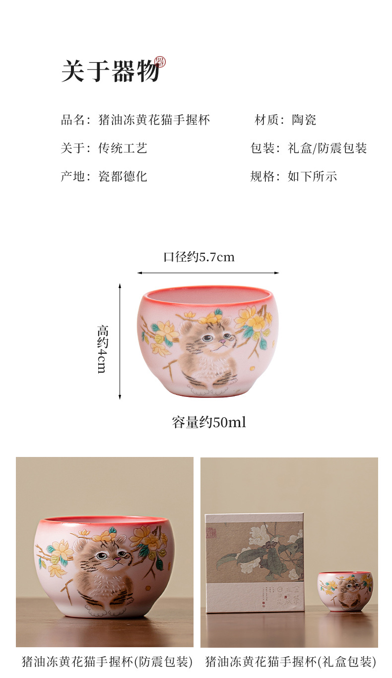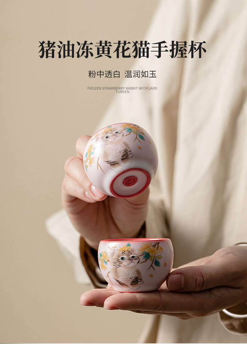 Mỡ lợn đông lạnh hoa vàng cốc cầm tay Mèo ngon cốc chủ nhân cốc đơn Bộ trà gốm sứ cốc trà nhỏ chuyên dụng cá nhân