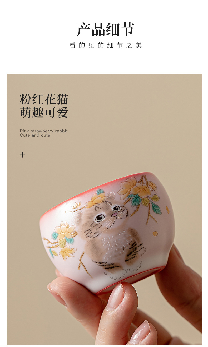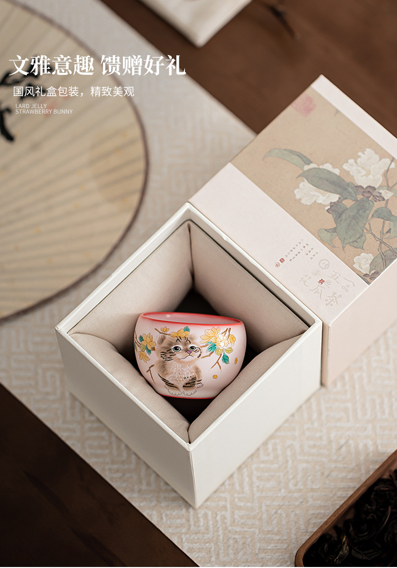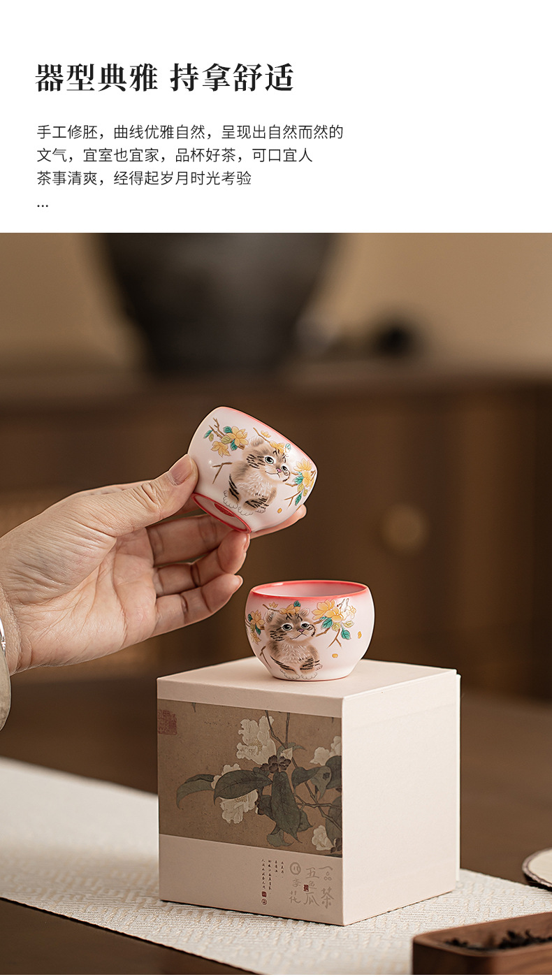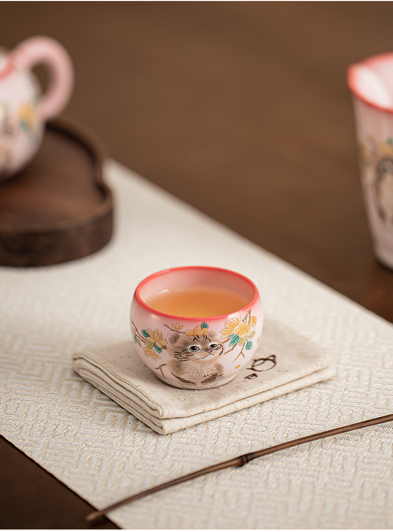 Mỡ lợn đông lạnh hoa vàng cốc cầm tay Mèo ngon cốc chủ nhân cốc đơn Bộ trà gốm sứ cốc trà nhỏ chuyên dụng cá nhân