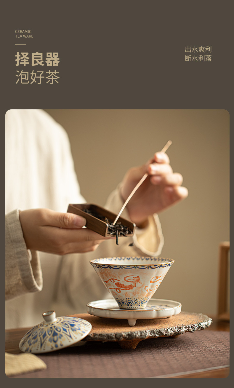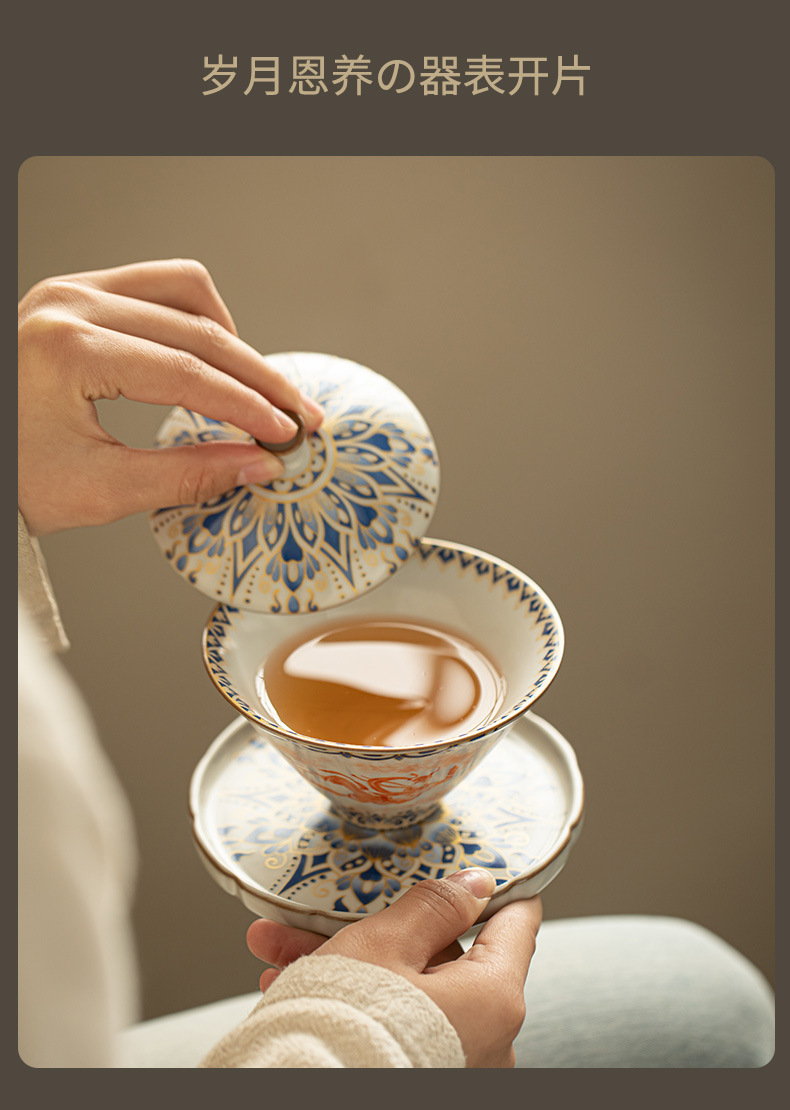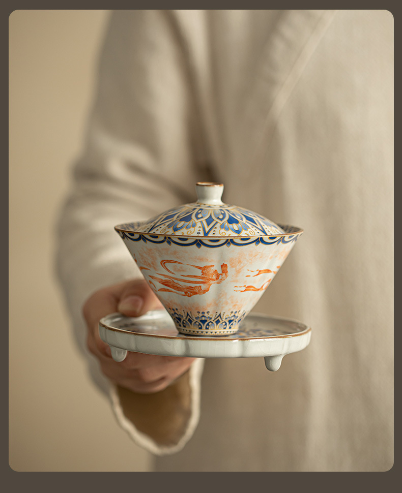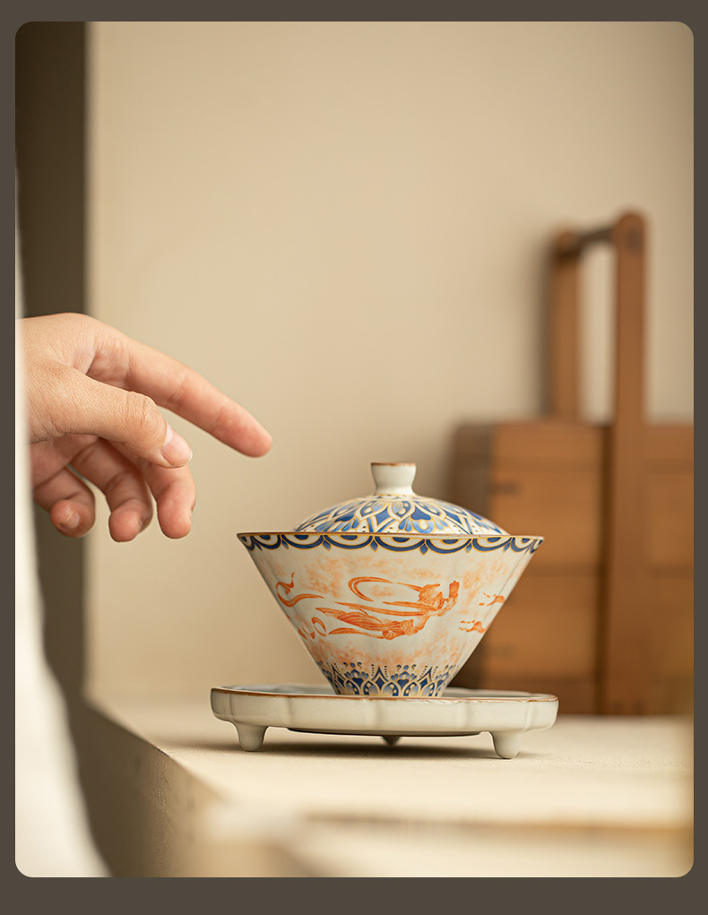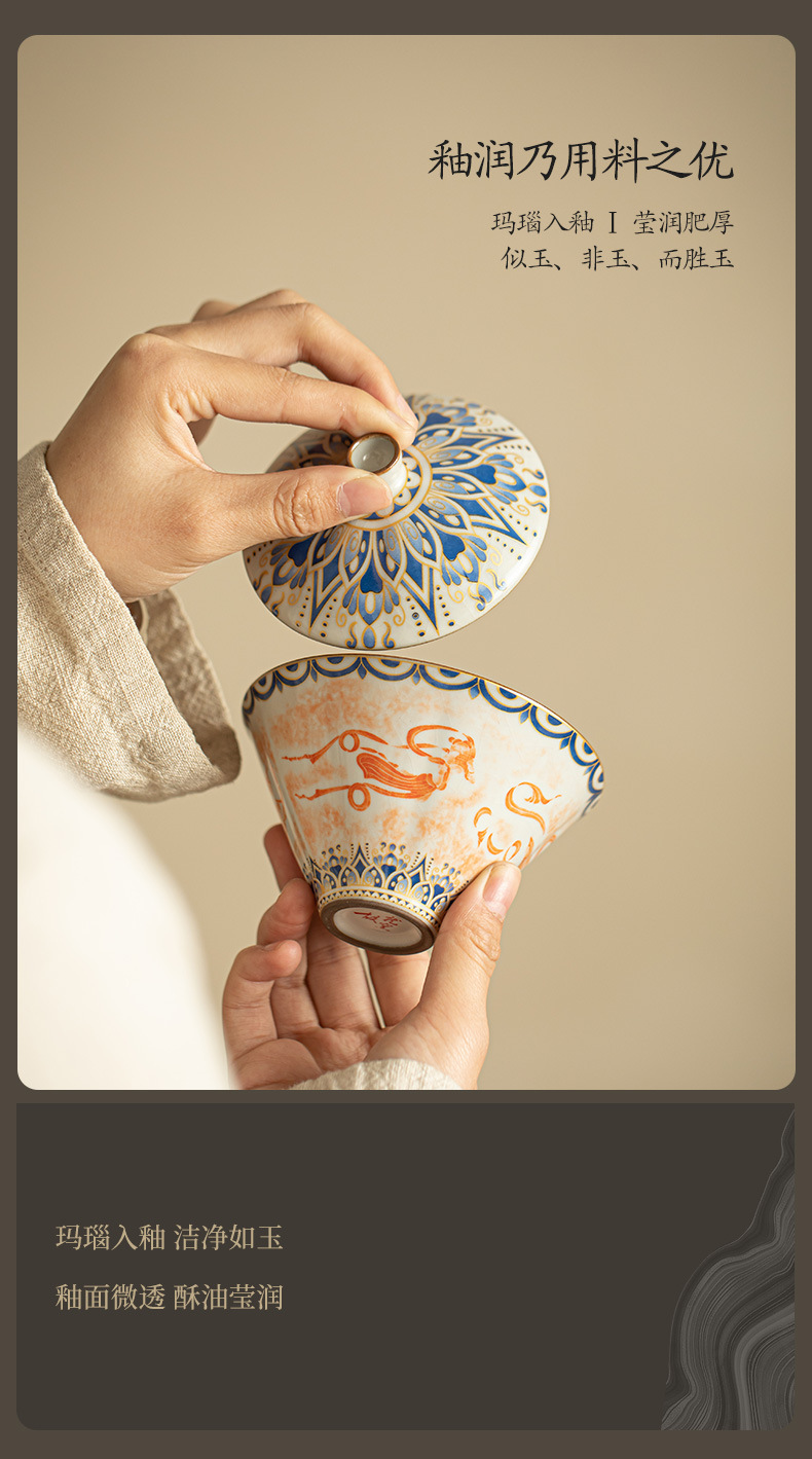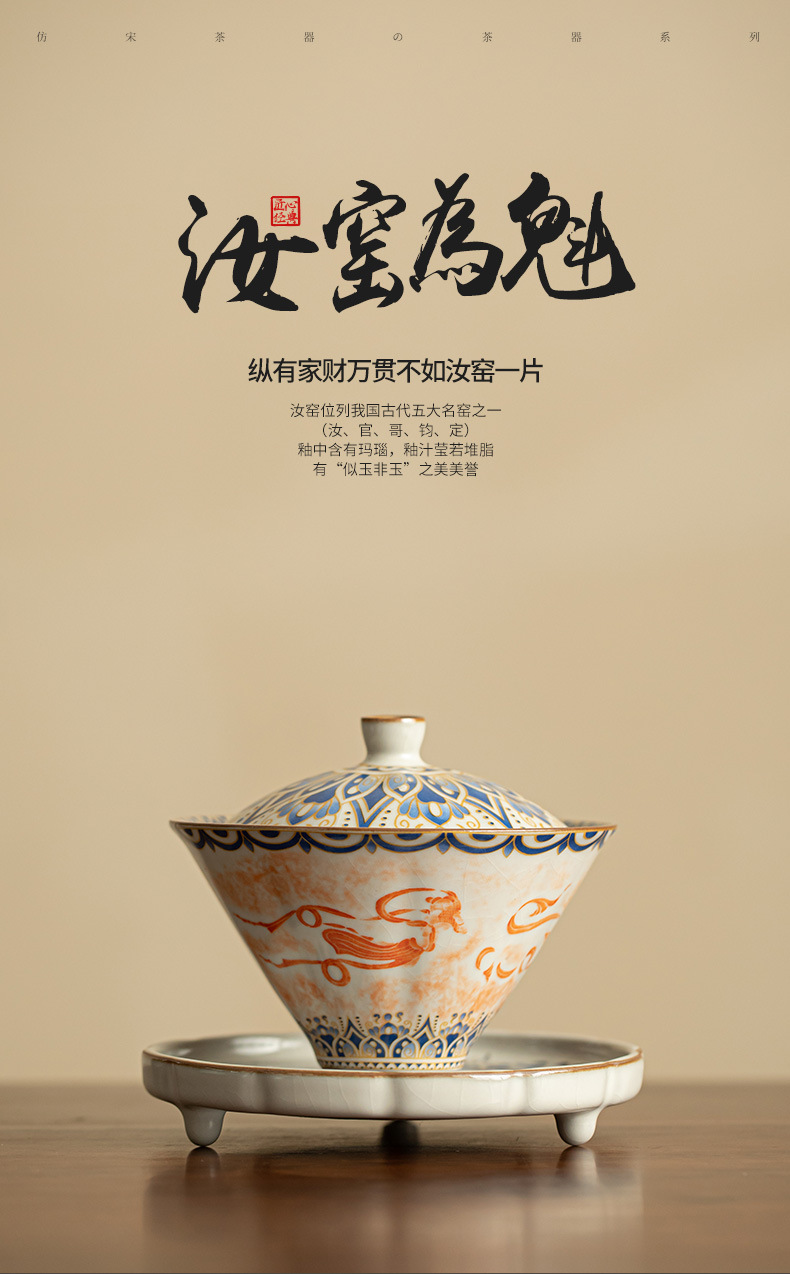 - Mô phỏng lò Song Ru Đôn Hoàng đội mũ bay tam tài bộ trà kungfu gia dụng chống bỏng bát trà gốm sứ dung tích lớn
