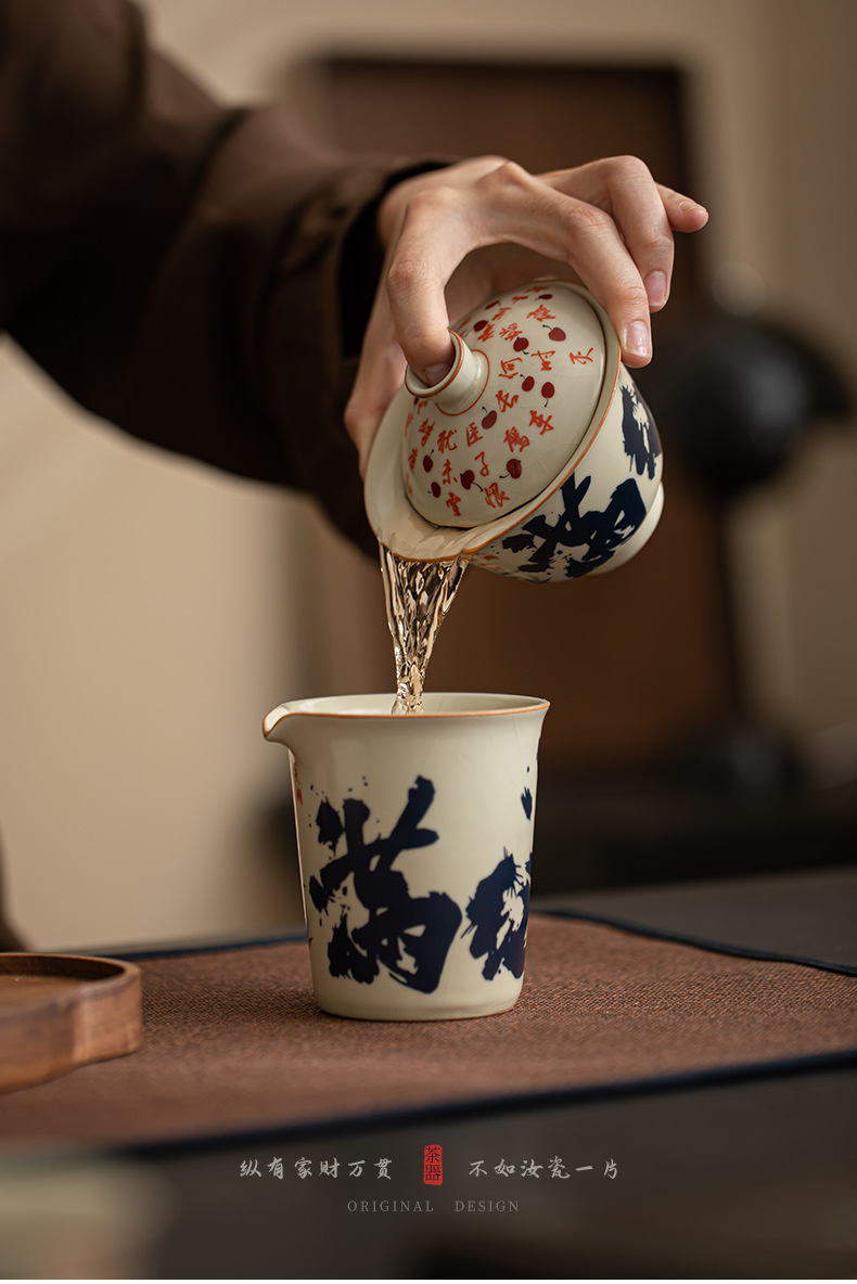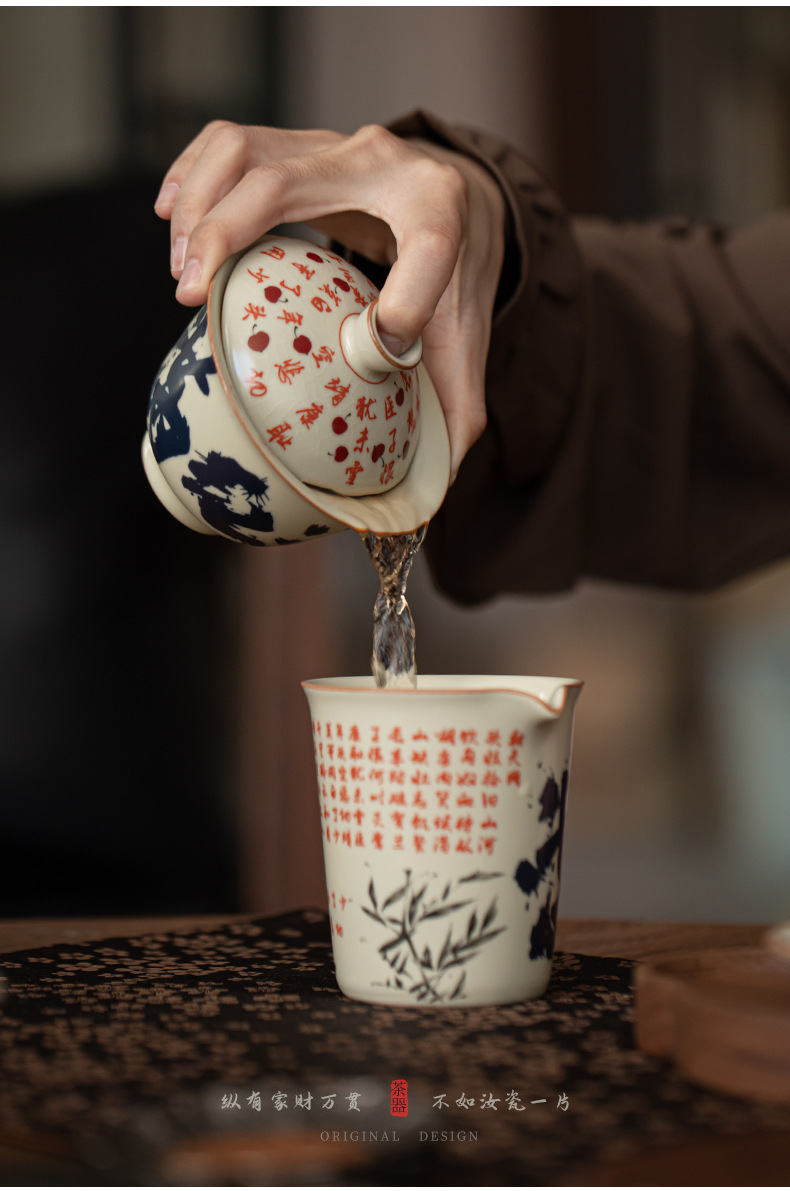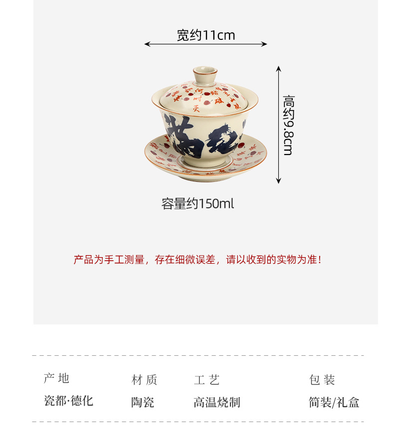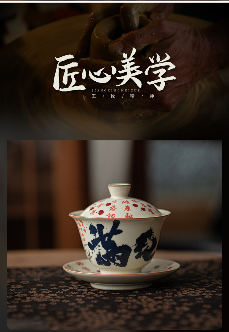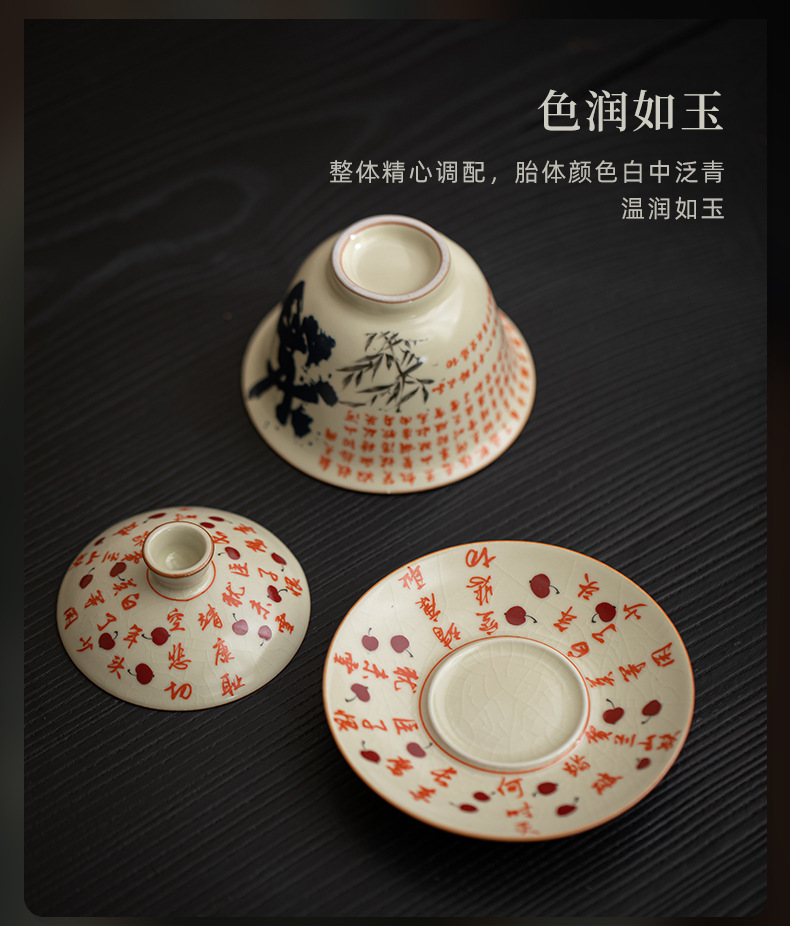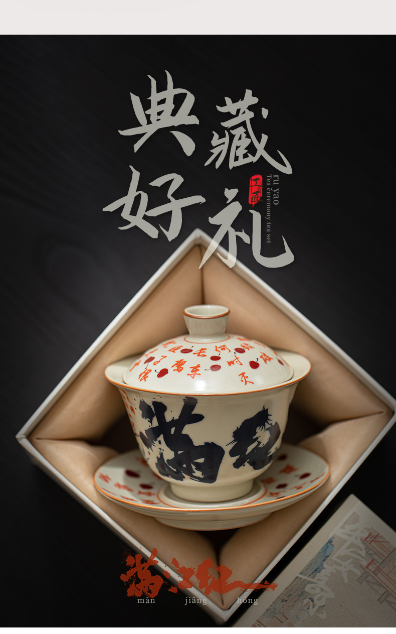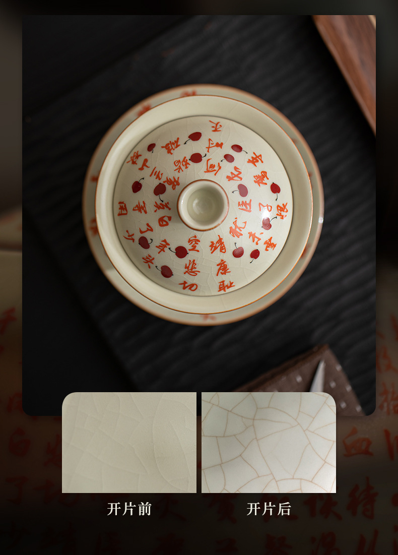 - Mô phỏng lò Song Ru Manjiang Red Sancai có nắp, dụng cụ pha trà gốm sứ gia dụng cổ điển, có thể mở ra, có thể nâng một bát trà lớn
