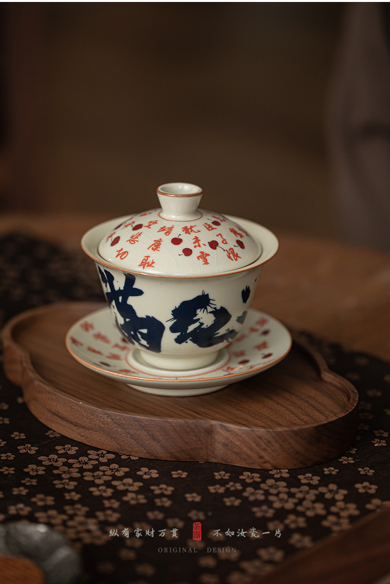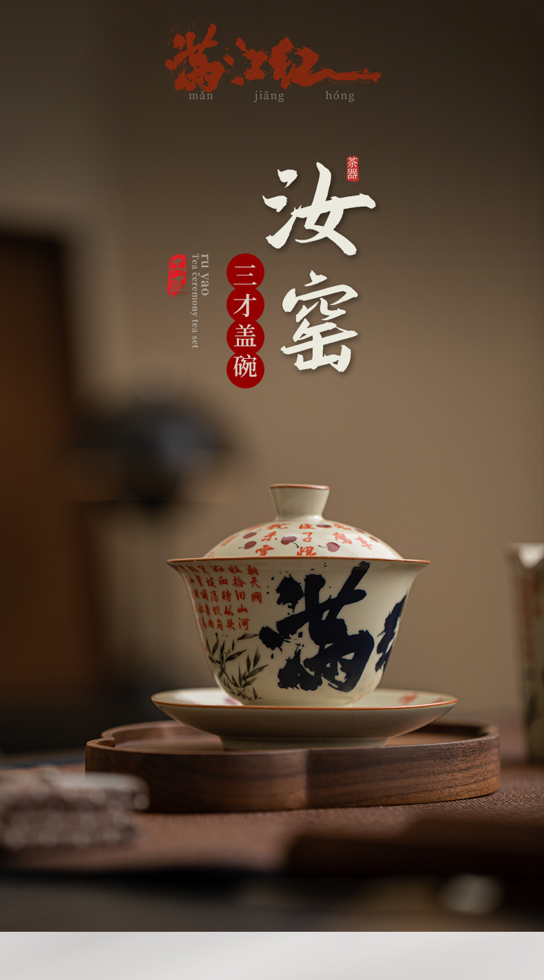 Mô phỏng lò Song Ru Manjiang Red Sancai có nắp, dụng cụ pha trà gốm sứ gia dụng cổ điển, có thể mở ra, có thể nâng một bát trà lớn