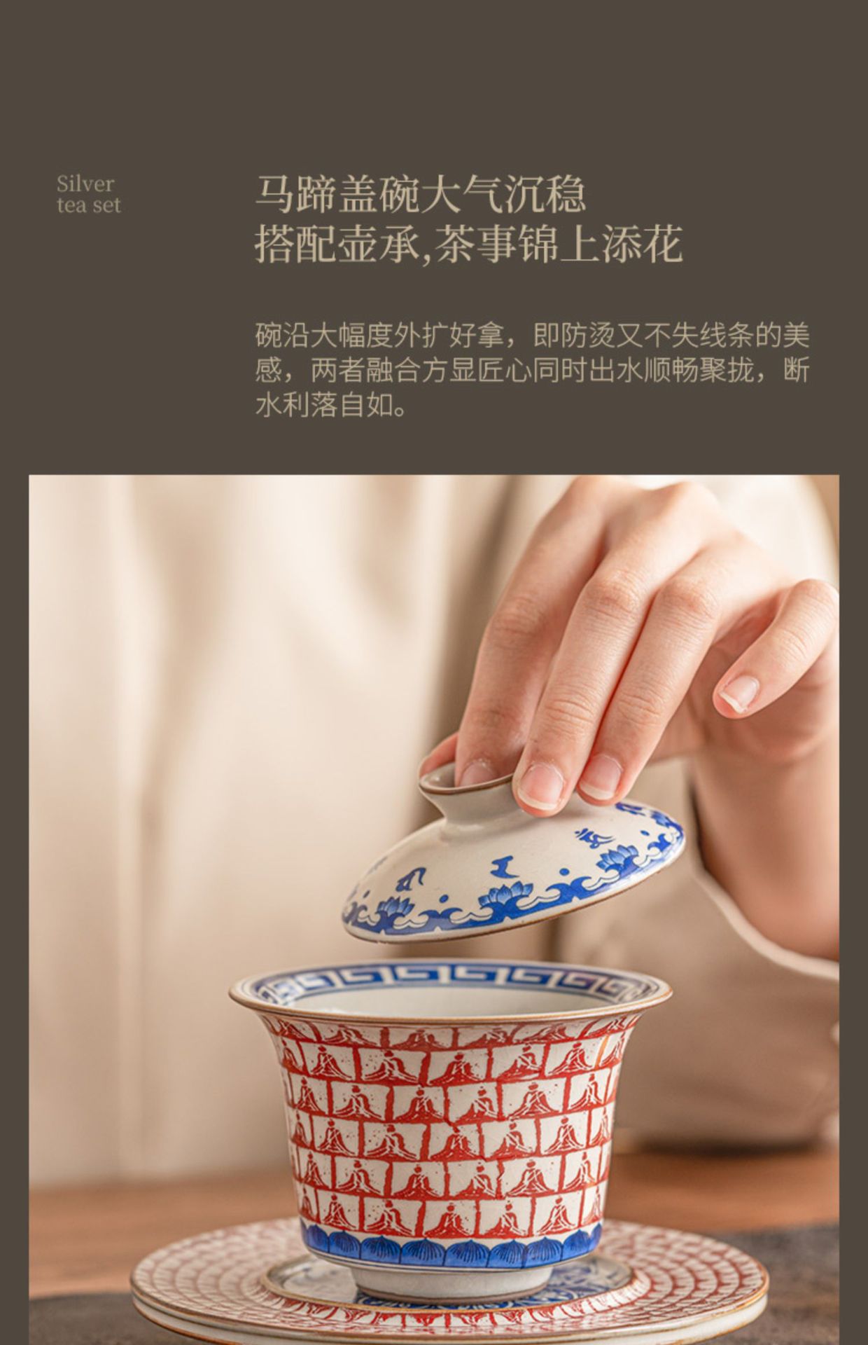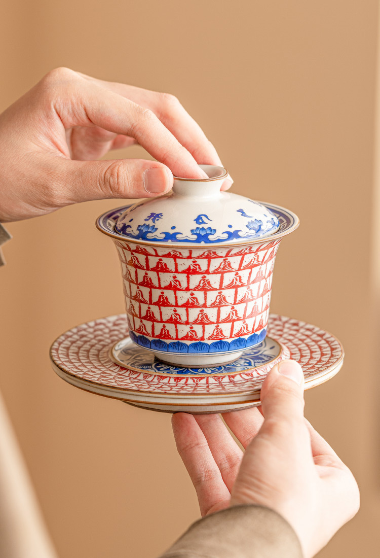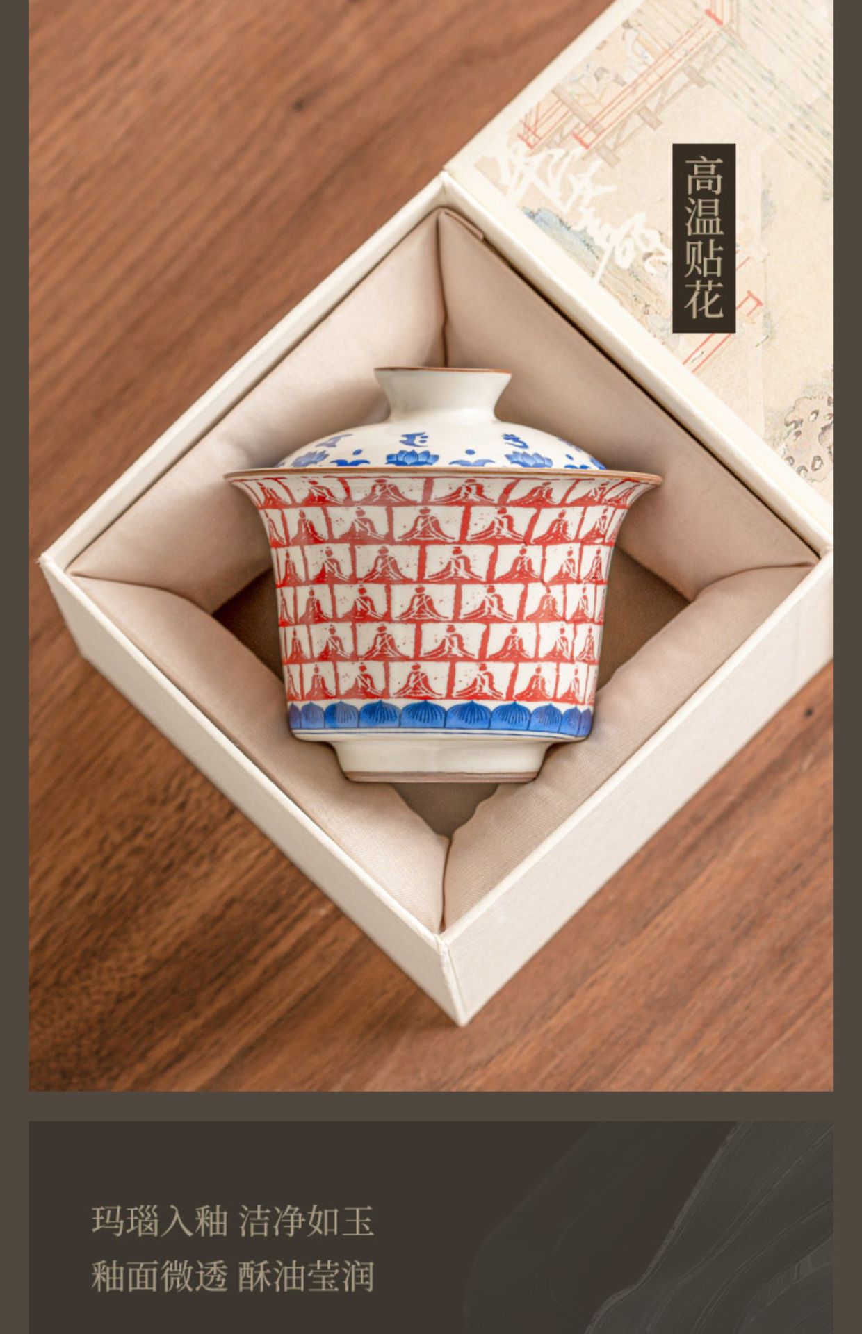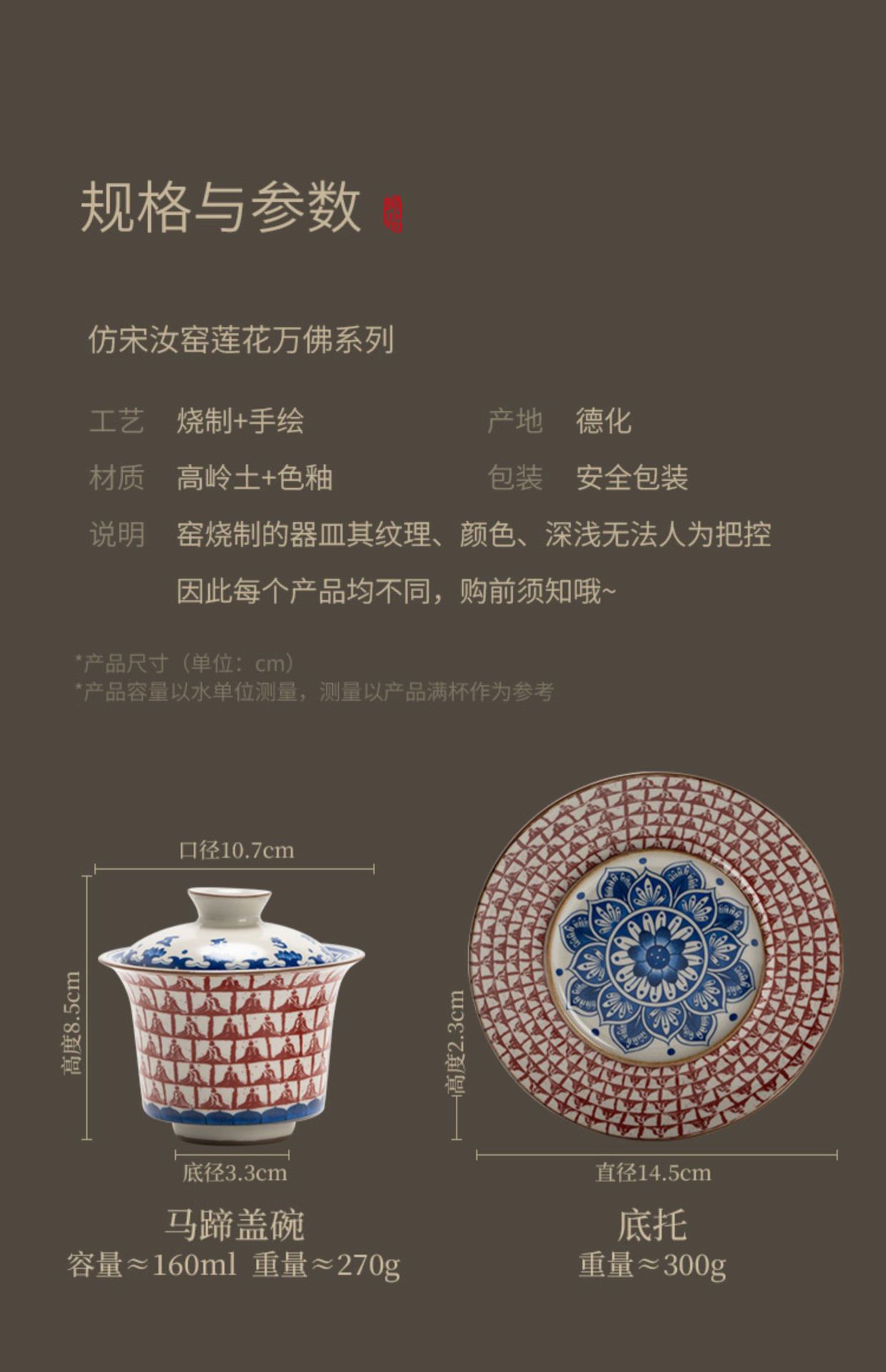 - Mô phỏng lò Tống Ru sen vạn Phật tam tài Bát trà có nắp cốc trà cao cấp đơn Bộ pha trà Kung Fu gốm sứ