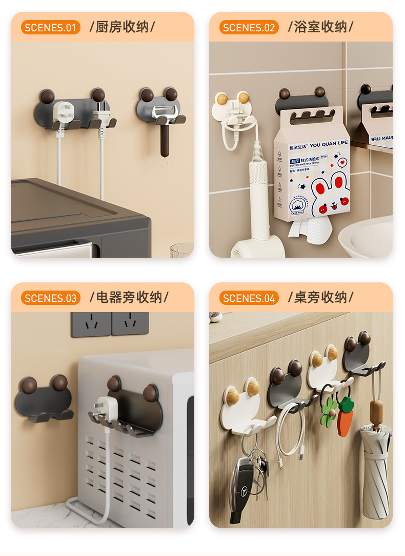- Móc cắm, không đục lỗ, cố định ổ cắm, móc dính, móc treo, thiết bị gia dụng, đầu sạc, dây điện, dụng cụ nhà bếp