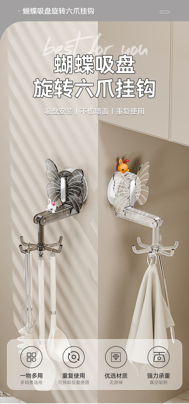 Móc cốc hút chân không mạnh mẽ nhà bếp xoay thìa Giá đỡ móc treo thìa đa chức năng không đục lỗ giá đỡ
