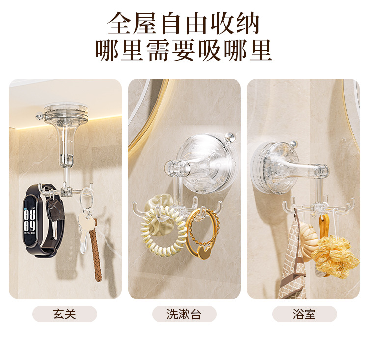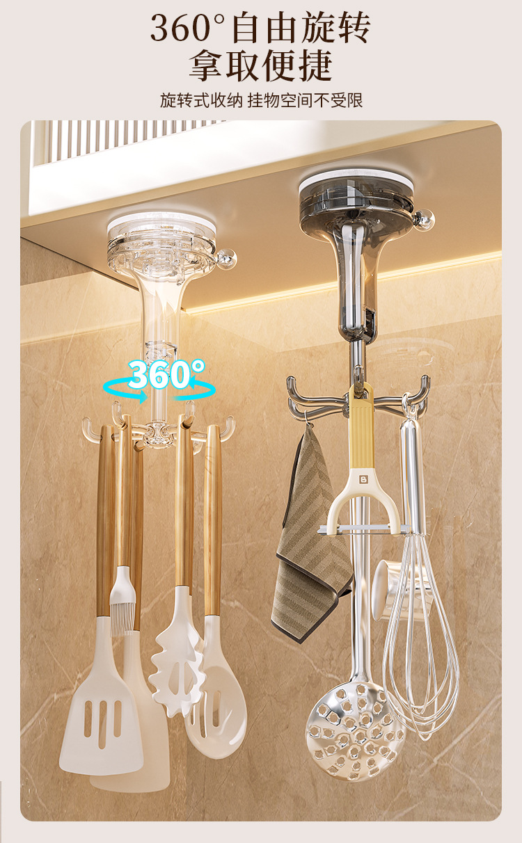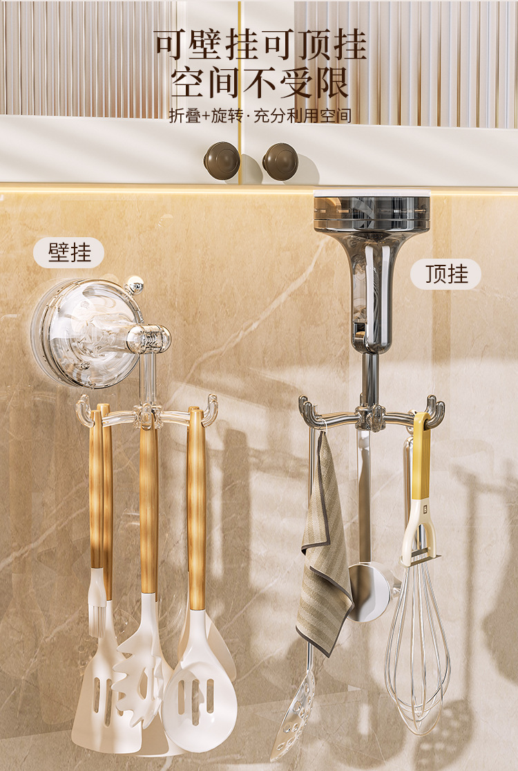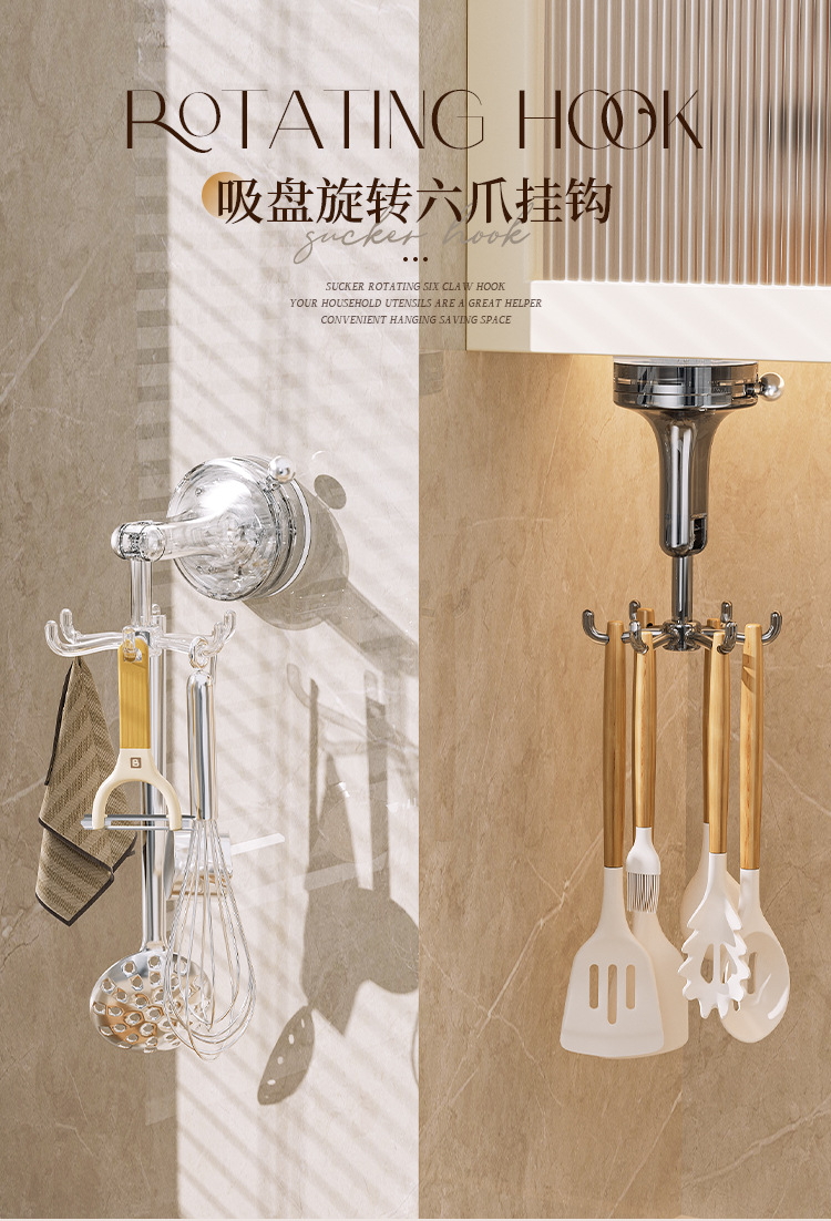 - Móc cốc hút nhà bếp móc dính xoay sáu Móng đa chức năng không đục lỗ mạnh mẽ giá treo thìa