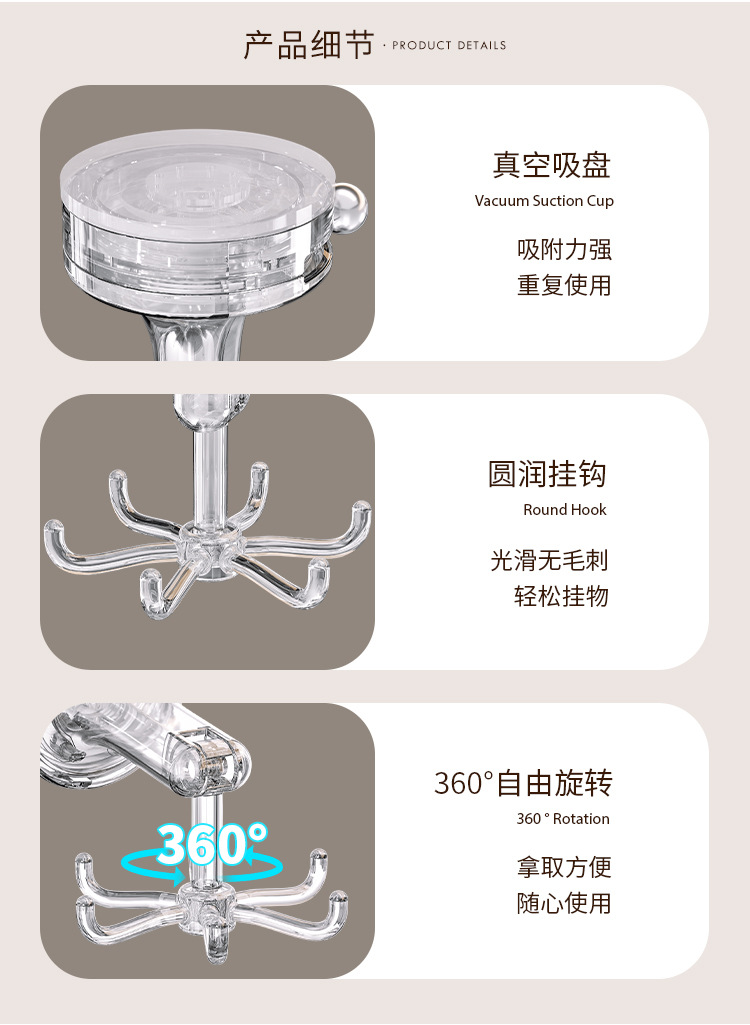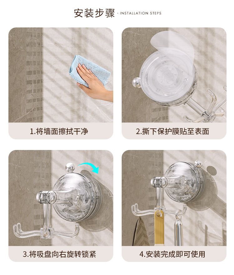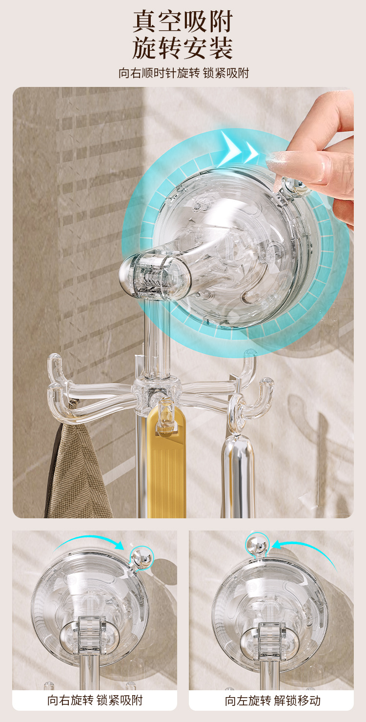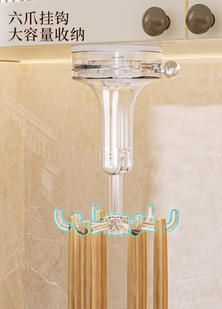- Móc cốc hút nhà bếp móc dính xoay sáu Móng đa chức năng không đục lỗ mạnh mẽ giá treo thìa