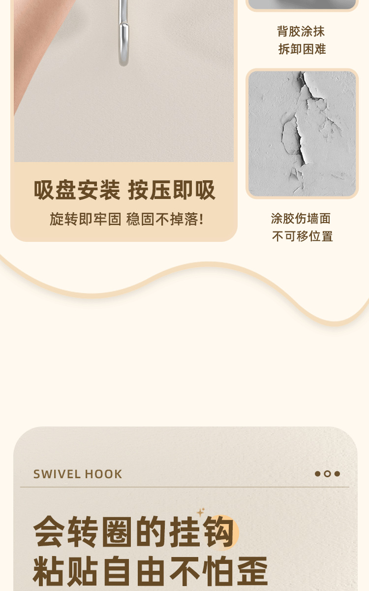 - Móc cốc hút xoay không cần đục lỗ chịu lực mạnh hút chân không liền mạch hiện vật nhà bếp phòng tắm khăn phòng tắm móc dính