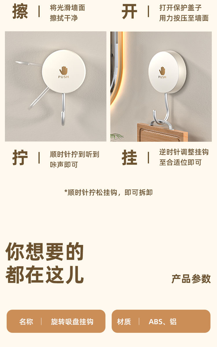 Móc cốc hút xoay không cần đục lỗ chịu lực mạnh hút chân không liền mạch hiện vật nhà bếp phòng tắm khăn phòng tắm móc dính
