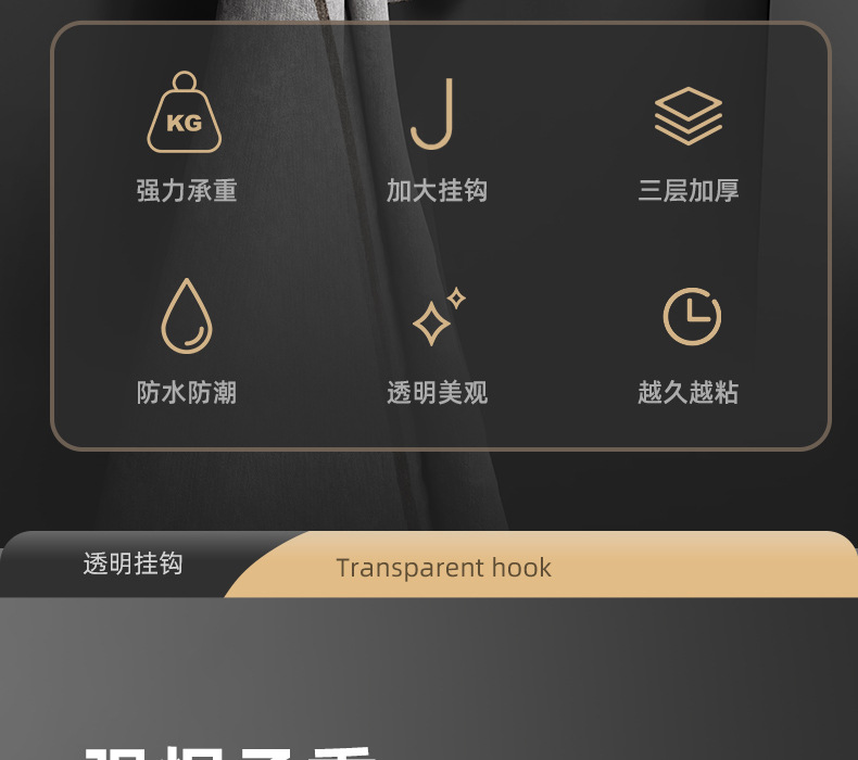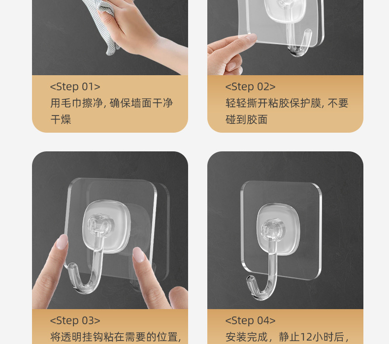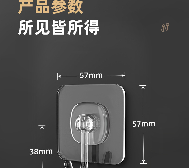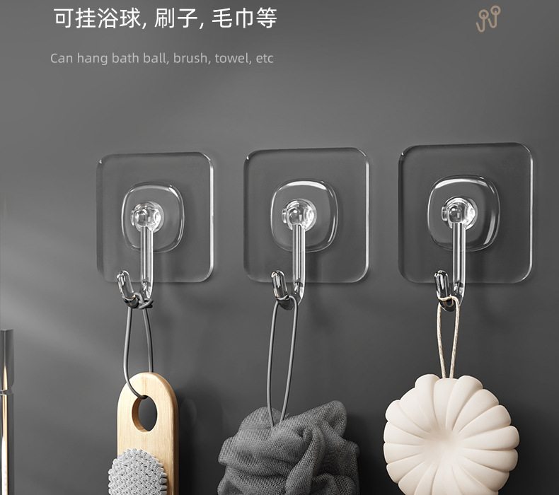 Móc dán tường dính mạnh mẽ, móc treo tường chịu lực trong suốt liền mạch, móc dán, móc không đục lỗ, móc dính dày