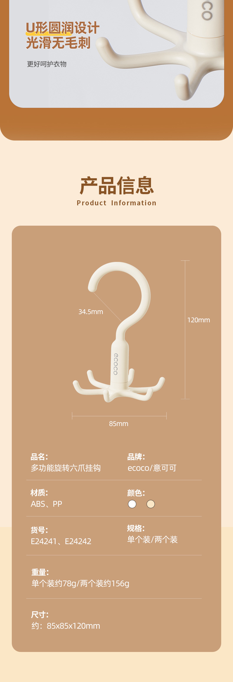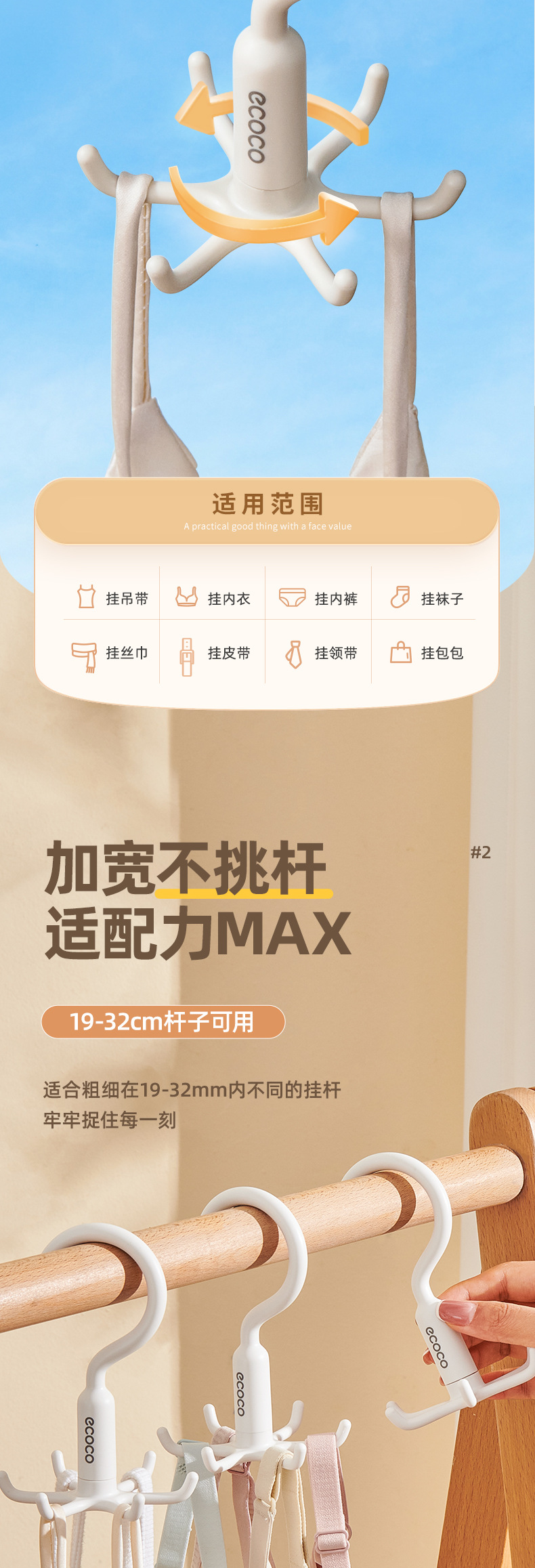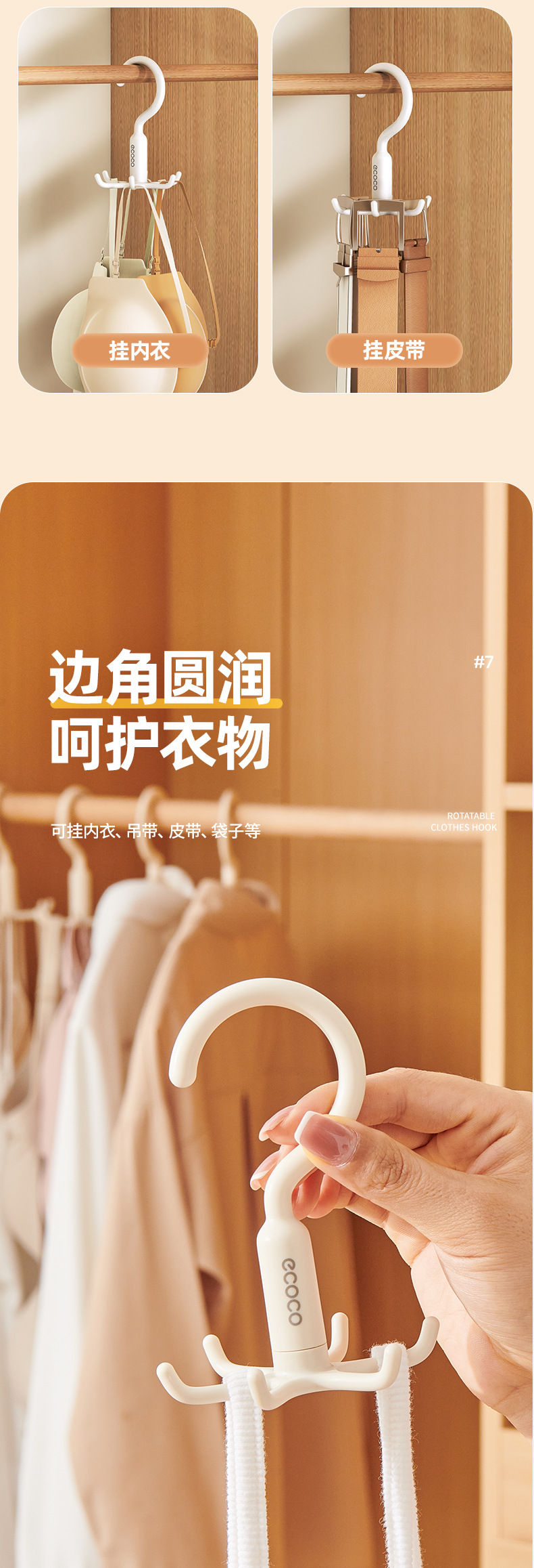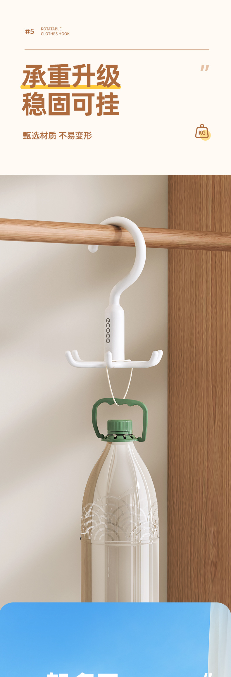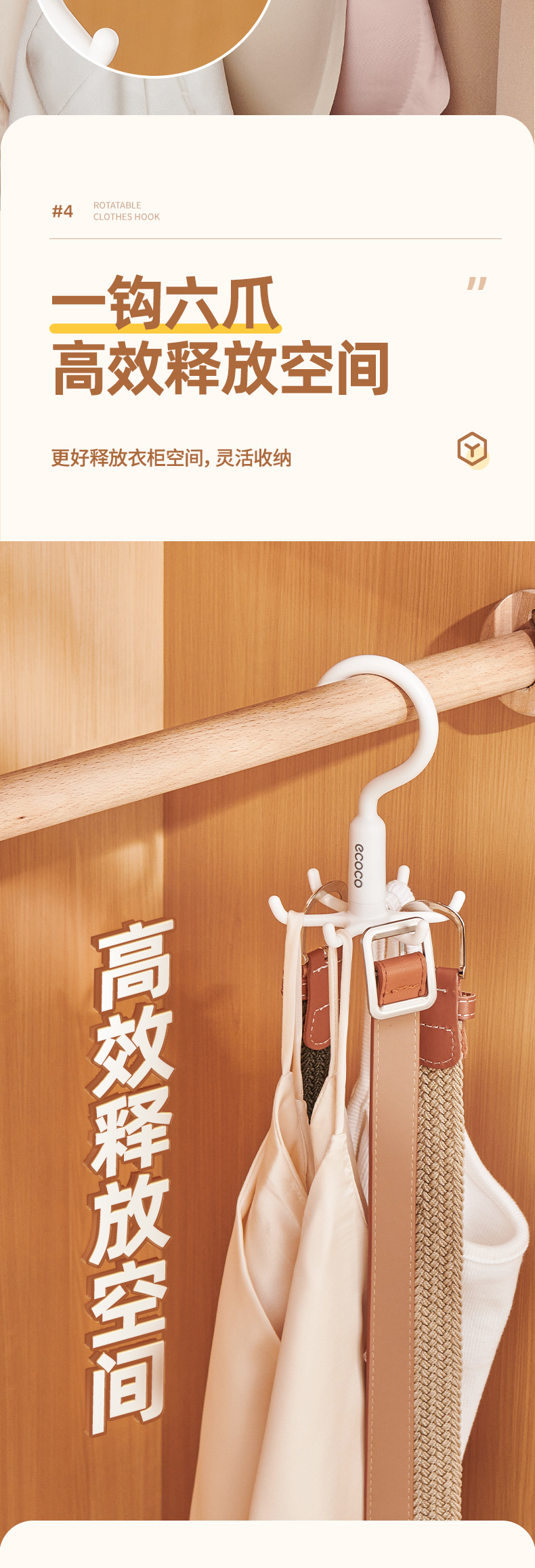 - Móc sáu móng xoay 360 ° ecoco móc treo quần áo không đục lỗ thanh phơi quần áo mũ túi móc treo quần áo lót