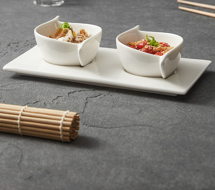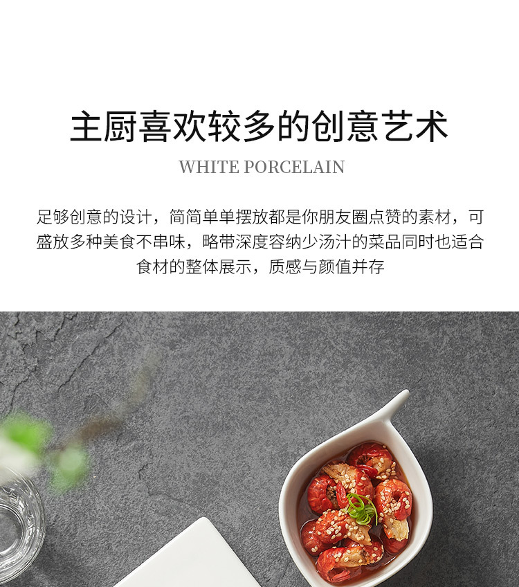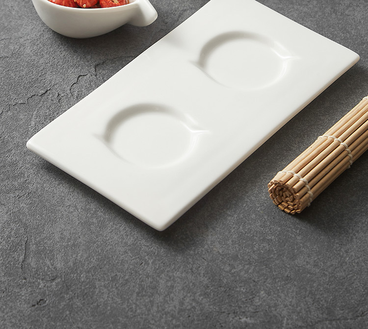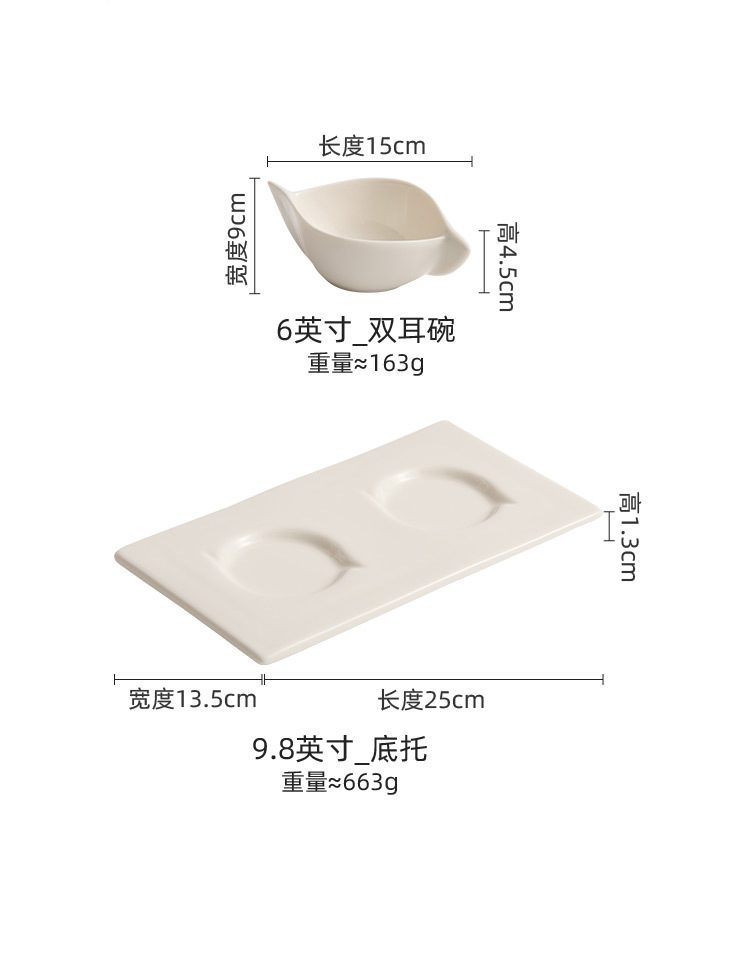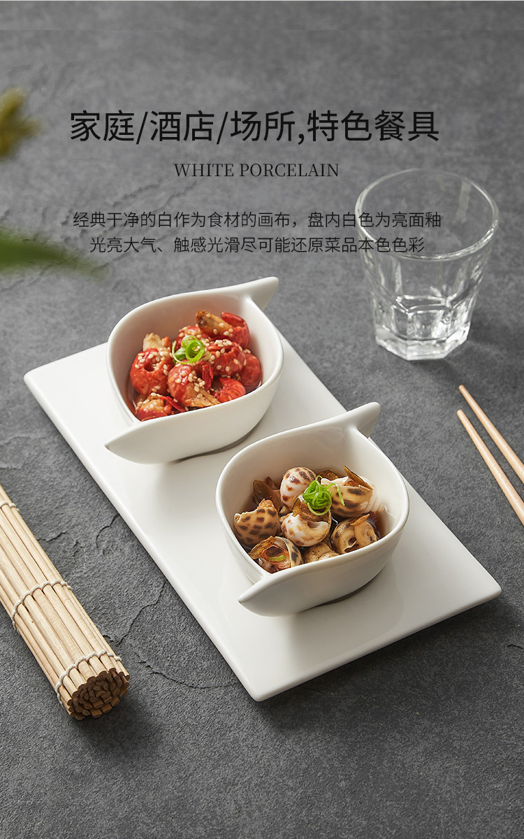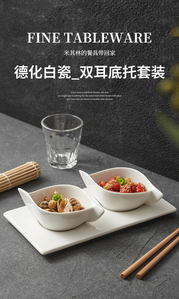 - Món ăn gốm sứ Dehua Món tráng miệng Món ăn vặt cao cấp sang trọng nhẹ gia dụng Đĩa nước sốt lẩu Bộ khay hai tai
