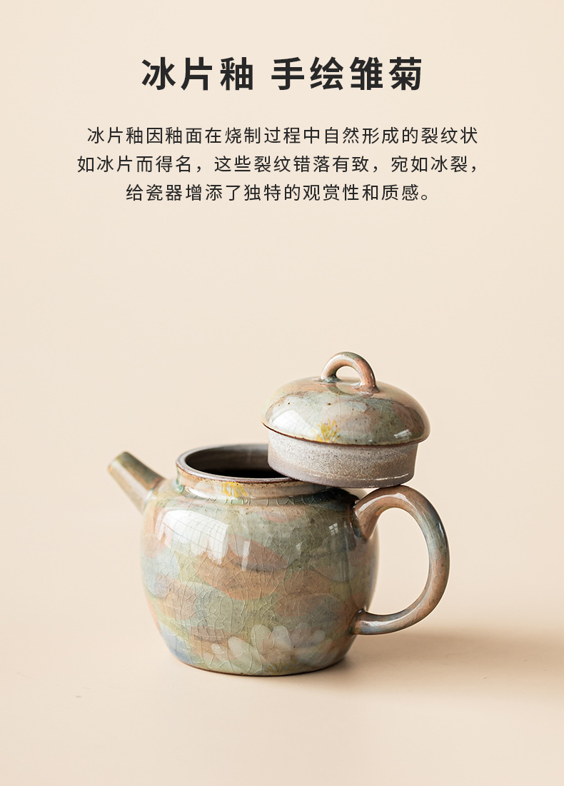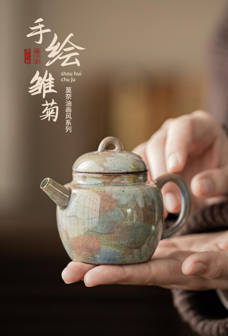 - Monet sơn dầu phong cách borneol men vẽ tay hoa cúc gốm sứ ấm Siting ấm lọc ấm đơn có ấm hộp quà