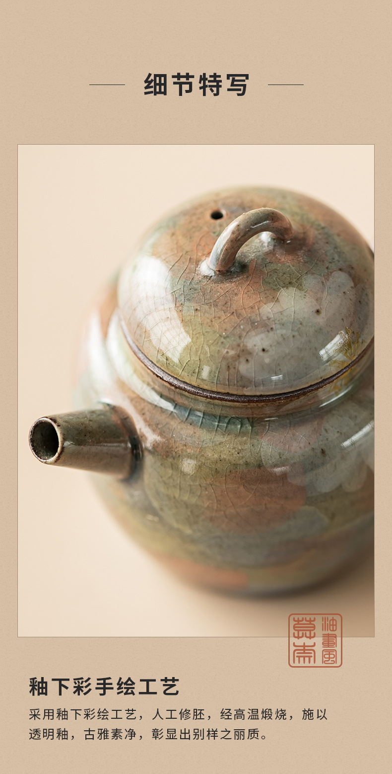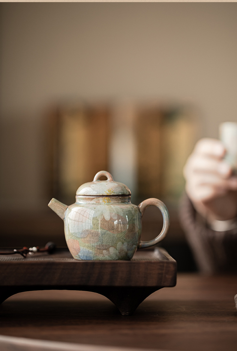 Monet sơn dầu phong cách borneol men vẽ tay hoa cúc gốm sứ ấm Siting ấm lọc ấm đơn có ấm hộp quà