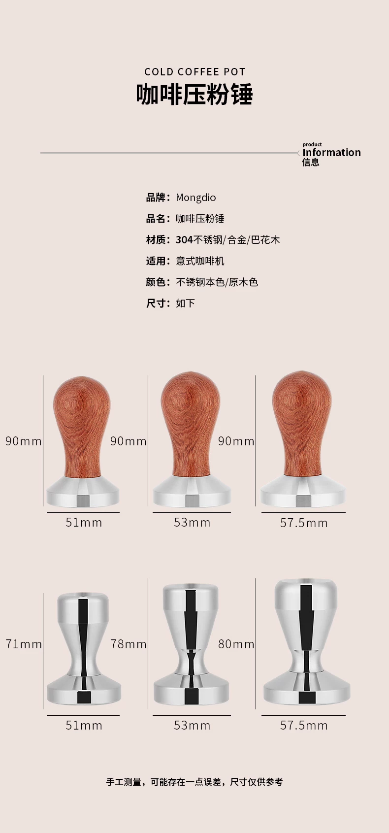 - Mongdio cà phê tamper lực không đổi tamper búa nguyên bản thép không gỉ phân phối dụng cụ máy pha cà phê phụ kiện 51/58mm
