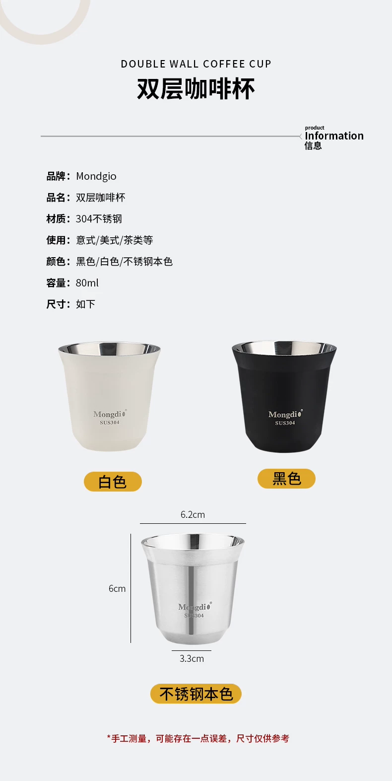 - Mongdio Cốc cà phê Ý cốc chiết xuất espresso cốc bắt chất lỏng cốc cách nhiệt bằng thép không gỉ cốc espresso chịu nhiệt hai lớp