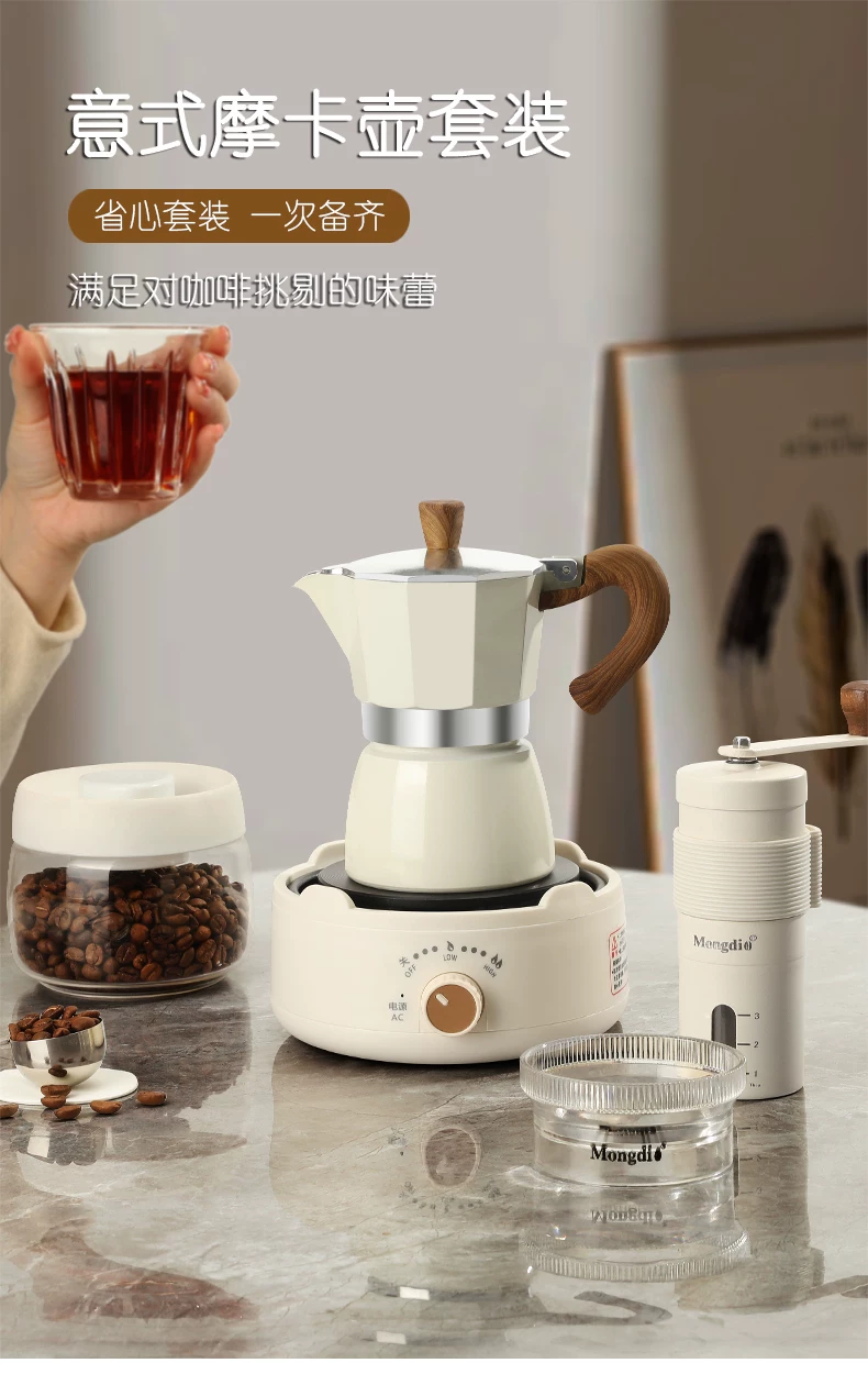 - Mongdio Moka pot máy pha cà phê van đôi hộ gia đình nhỏ bếp điện gốm sứ espresso chiết xuất pha cà phê bằng tay bộ