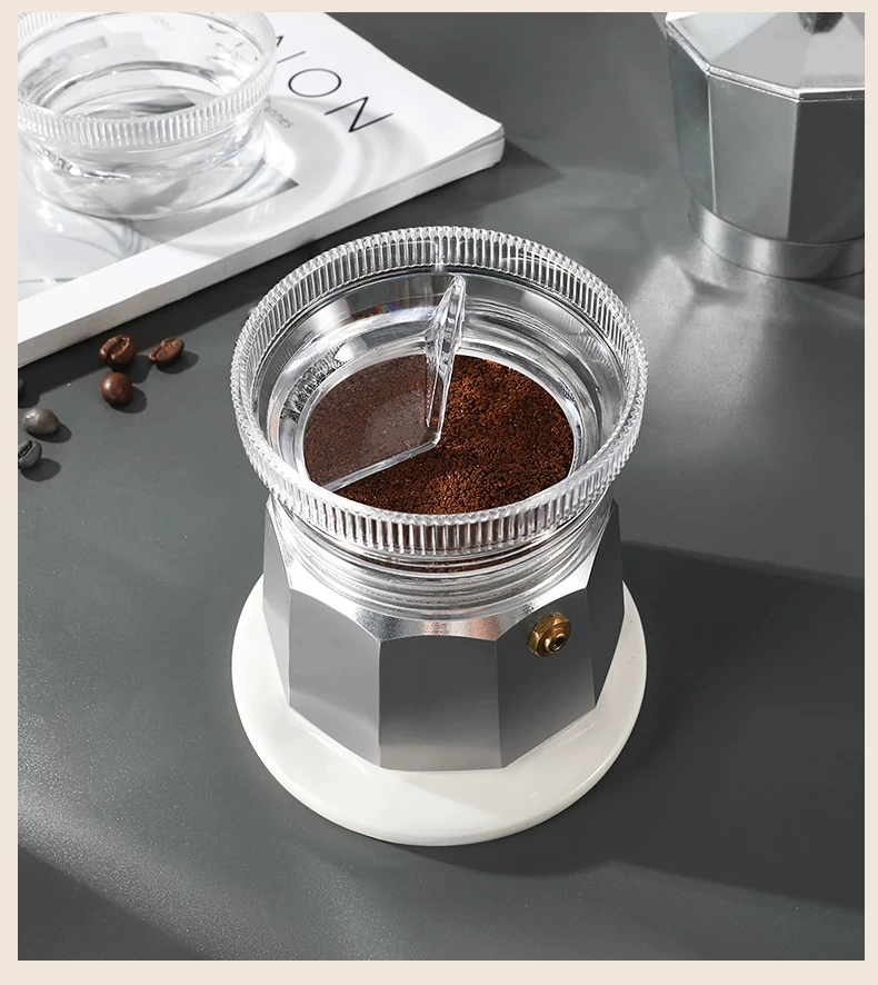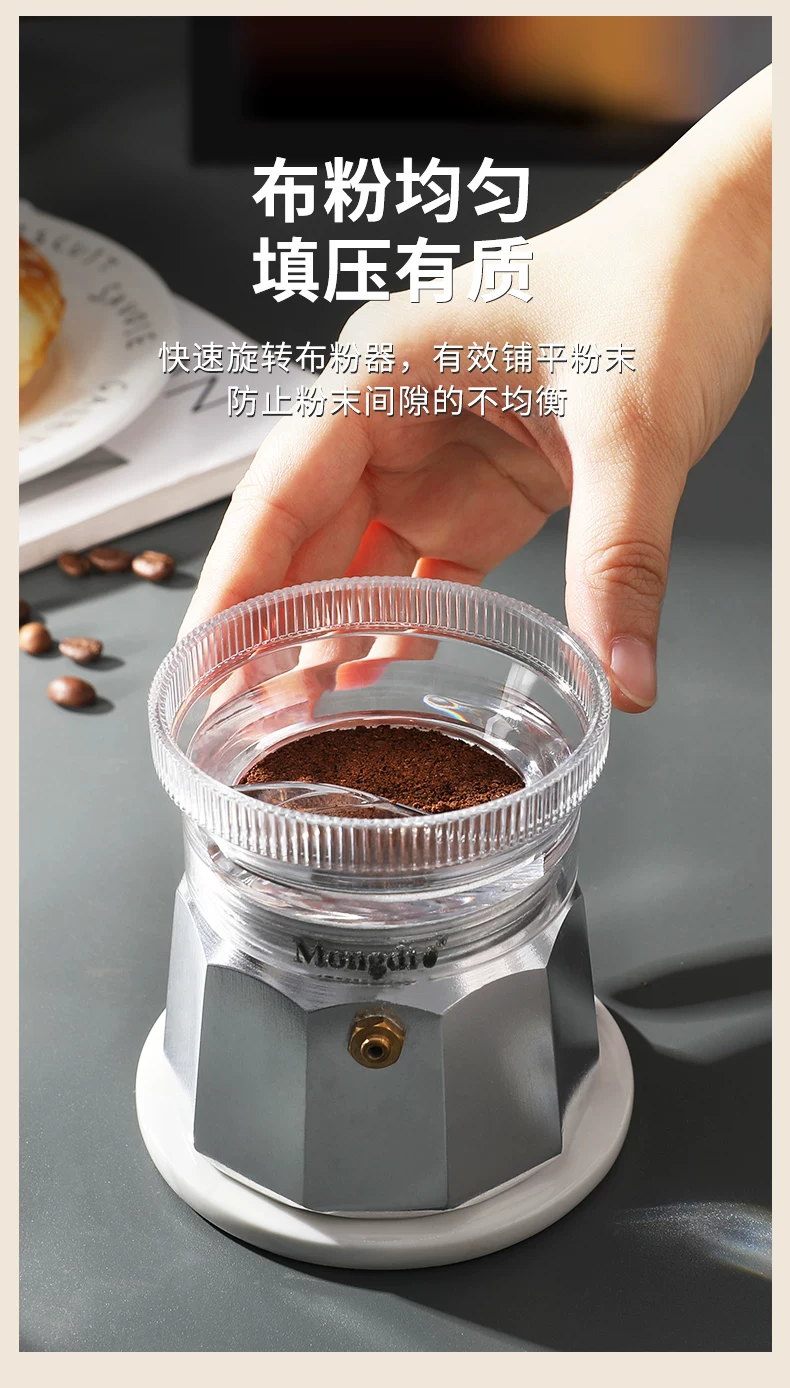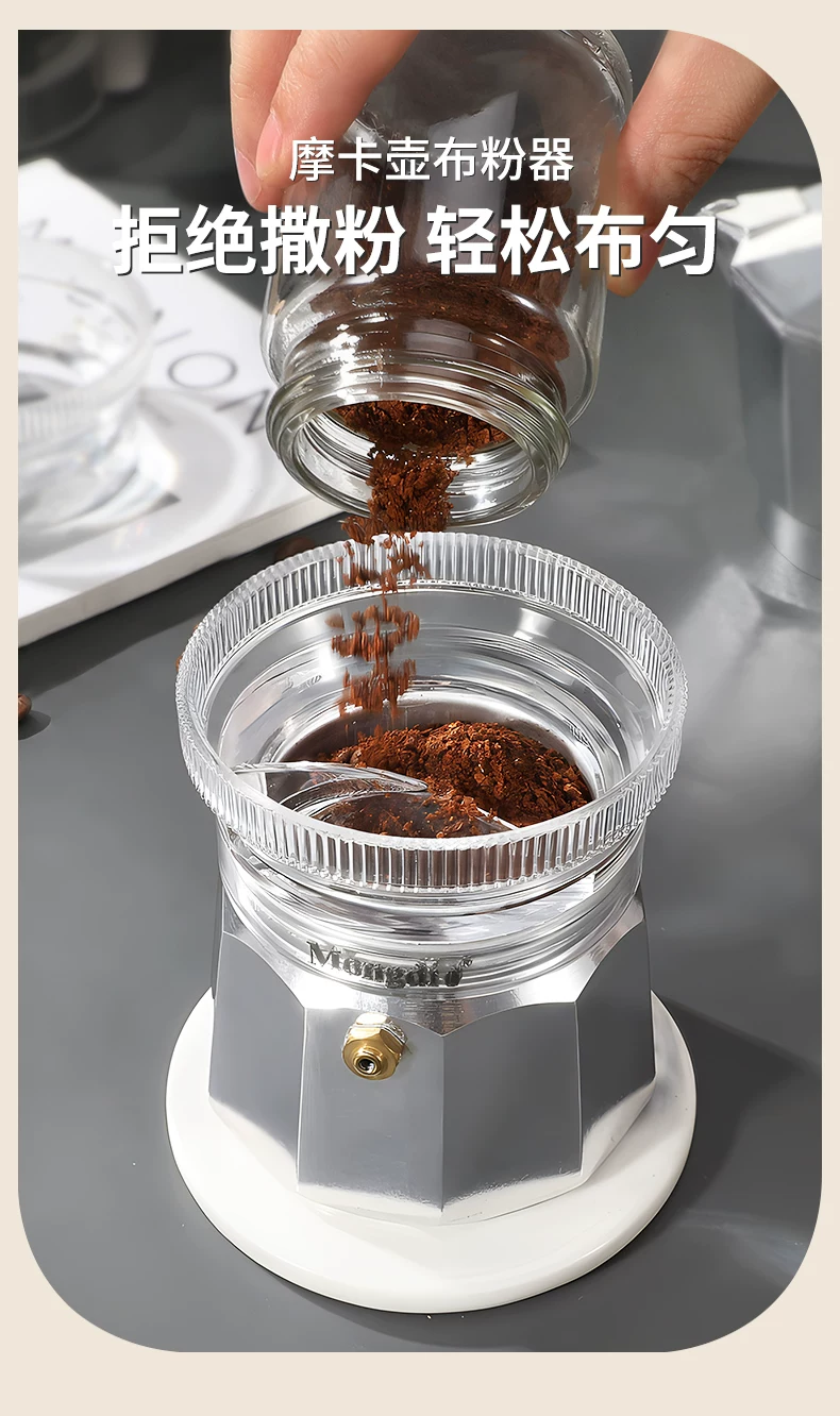 - Mongdio Moka pot nhà phân phối bột cà phê bột ép vòng bột làm đầy bột chống bắn tung tóe phụ kiện đặc biệt dụng cụ phân phối bột
