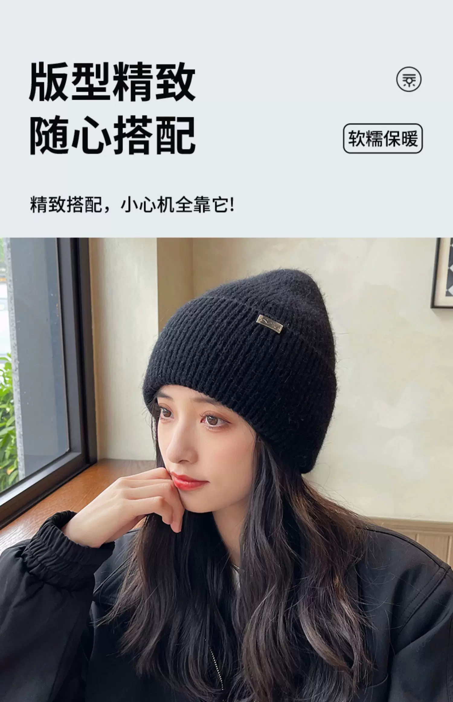 - Mũ đan len thời trang mùa đông mới của Hàn Quốc dành cho nữ, dày dặn để giữ ấm, bảo vệ tai, đa năng, mũ đan len làm thon gọn khuôn mặt.
