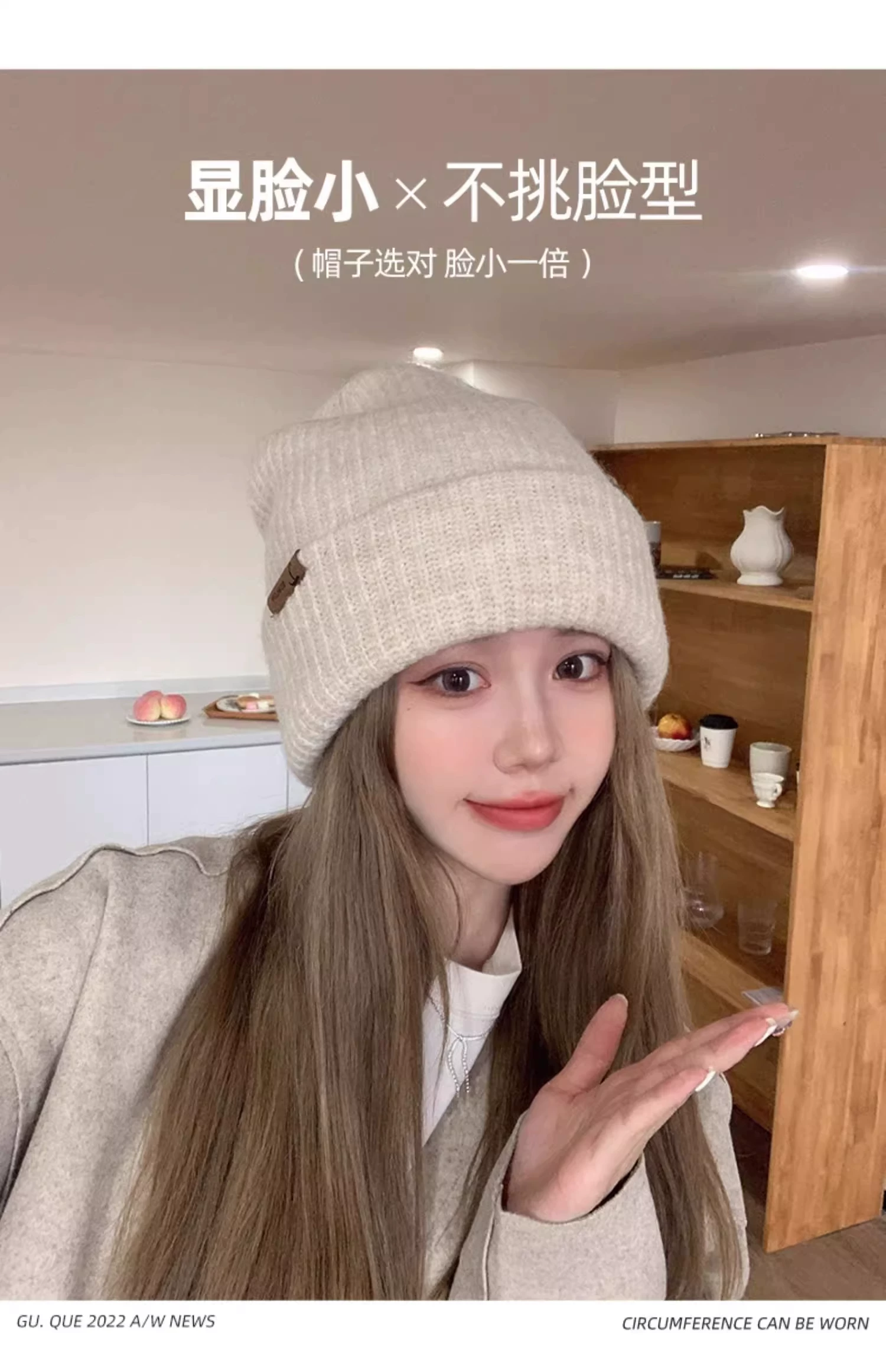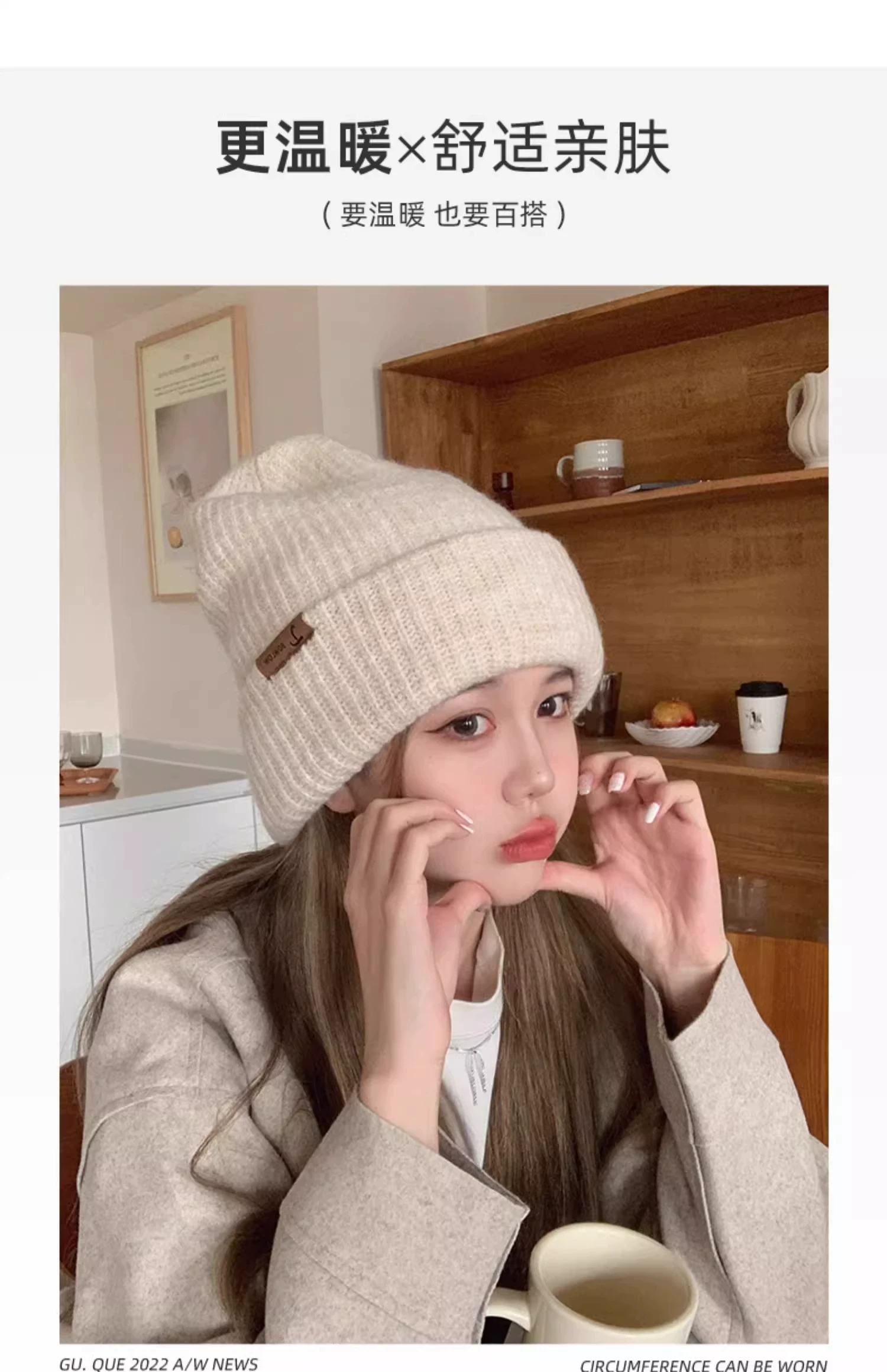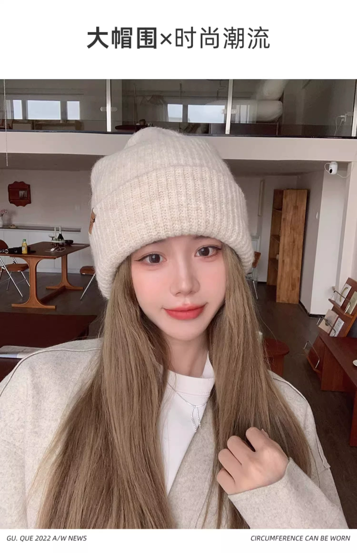 - Mũ dệt kim có chu vi đầu lớn dành cho nữ, mũ đi bộ đường dài ngoài trời mùa thu đông, mũ ấm khi trượt tuyết, mũ dệt kim làm thon gọn khuôn mặt, chống lạnh, bảo vệ tai.