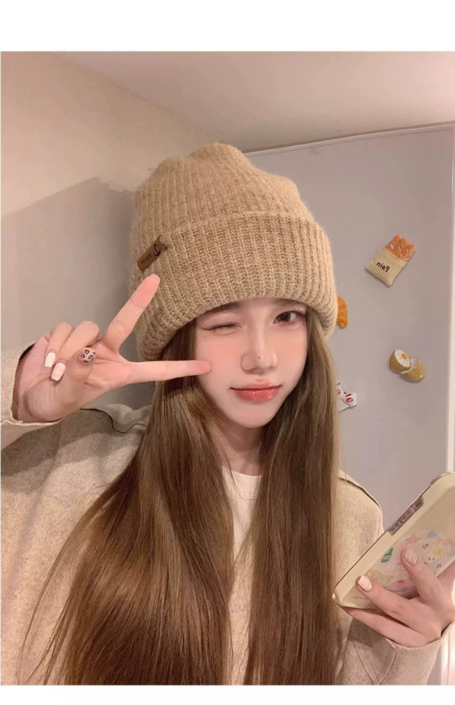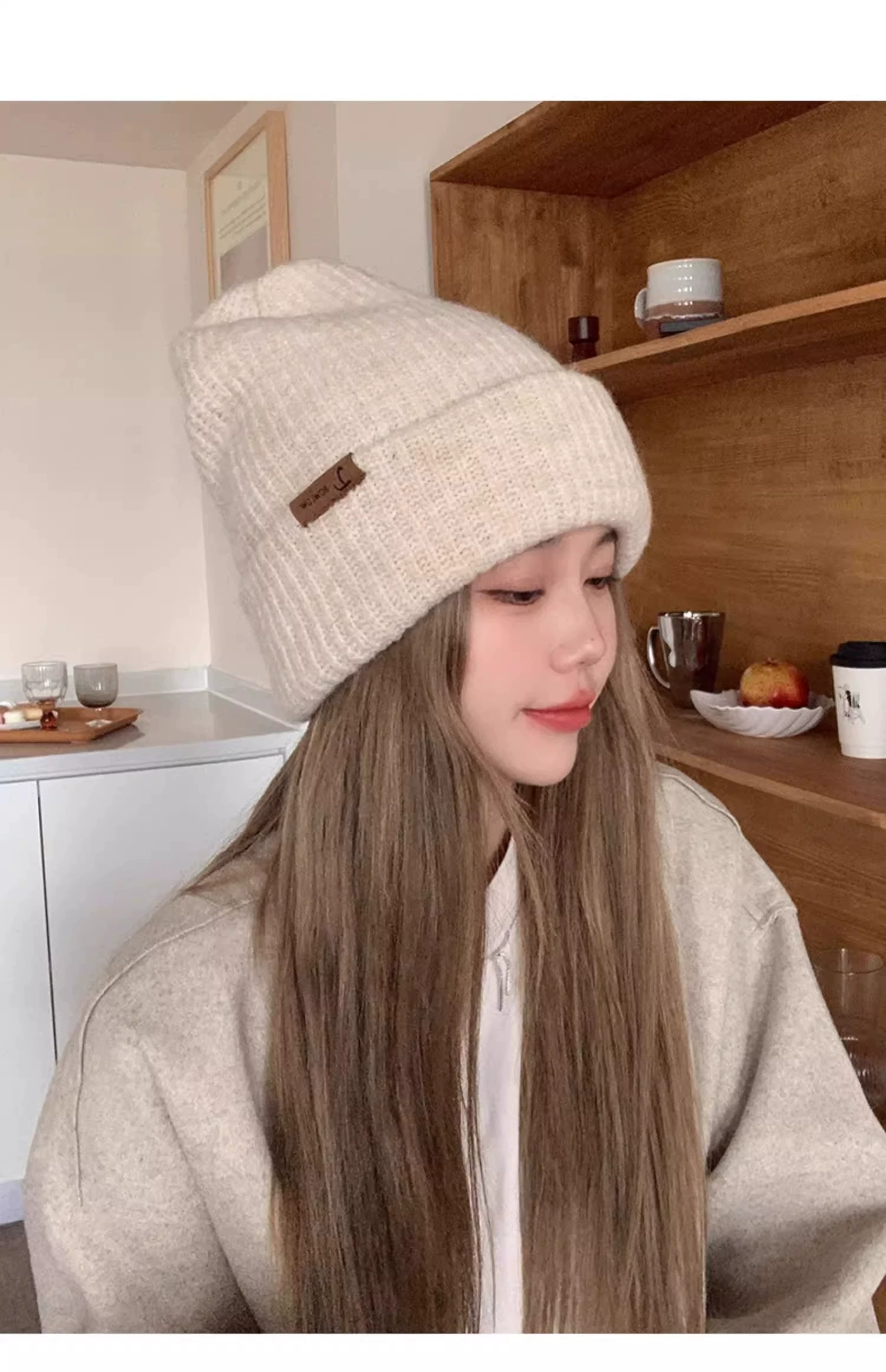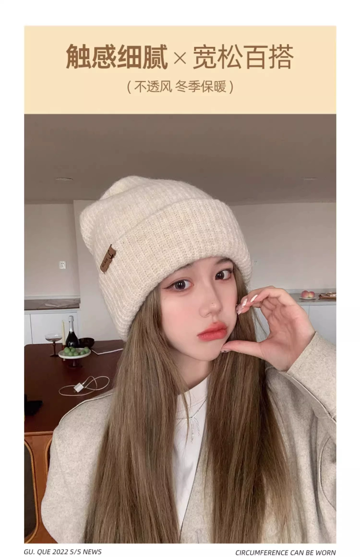 - Mũ dệt kim có chu vi đầu lớn dành cho nữ, mũ đi bộ đường dài ngoài trời mùa thu đông, mũ ấm khi trượt tuyết, mũ dệt kim làm thon gọn khuôn mặt, chống lạnh, bảo vệ tai.