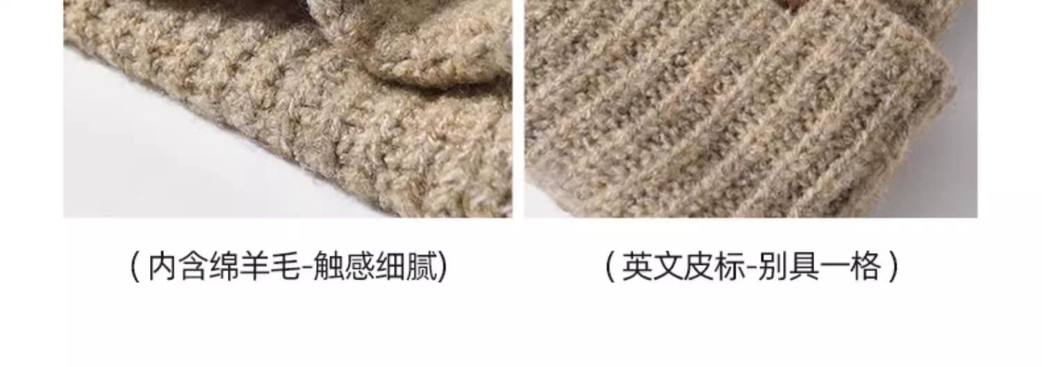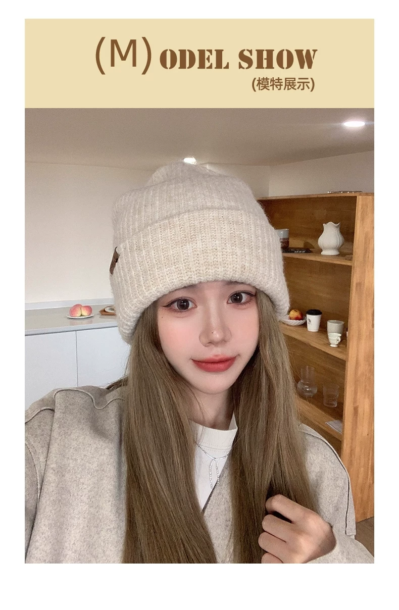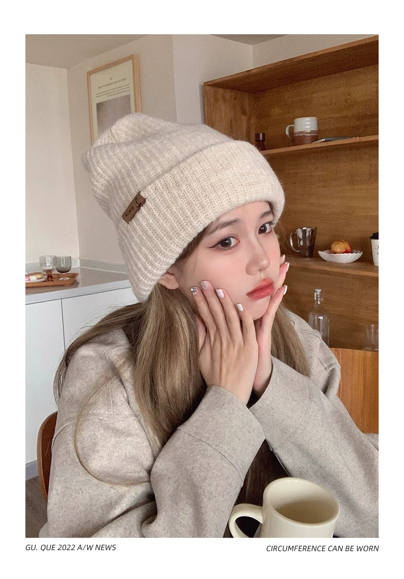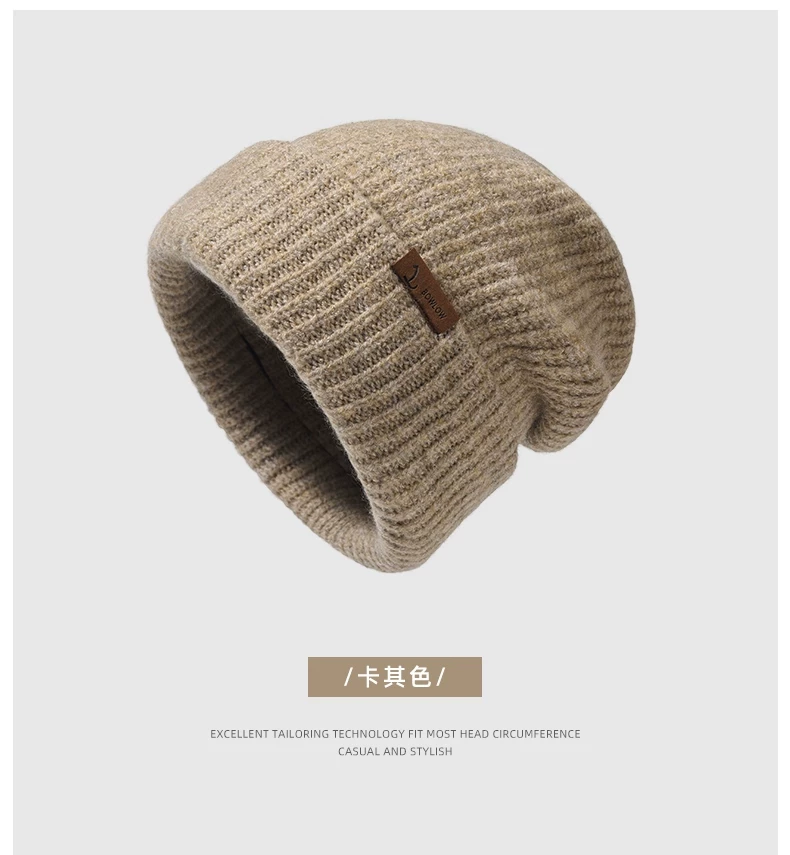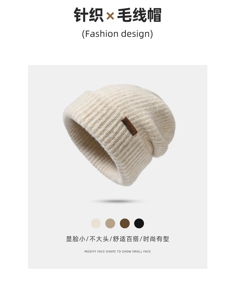 Mũ dệt kim có chu vi đầu lớn dành cho nữ, mũ đi bộ đường dài ngoài trời mùa thu đông, mũ ấm khi trượt tuyết, mũ dệt kim làm thon gọn khuôn mặt, chống lạnh, bảo vệ tai.