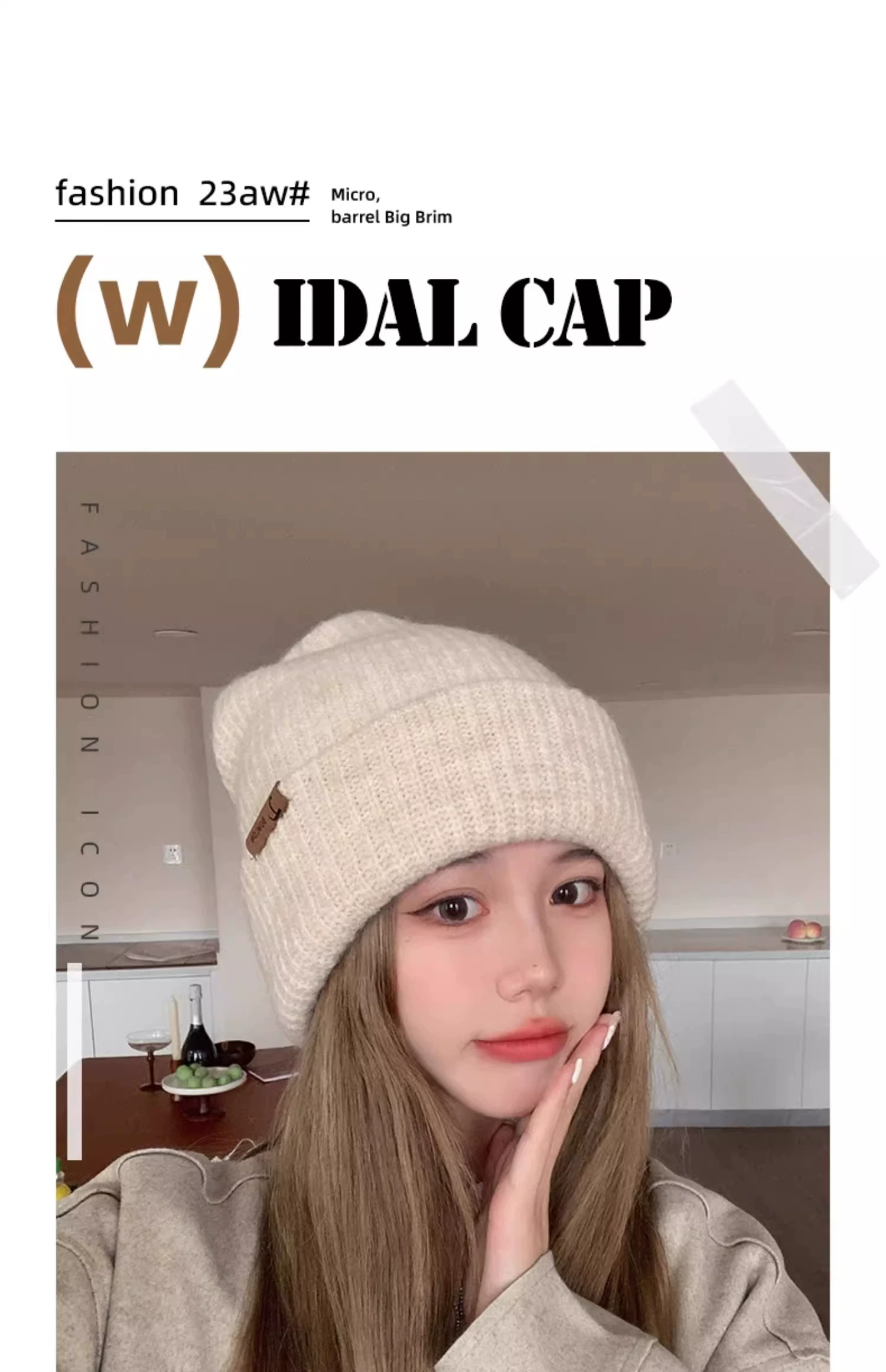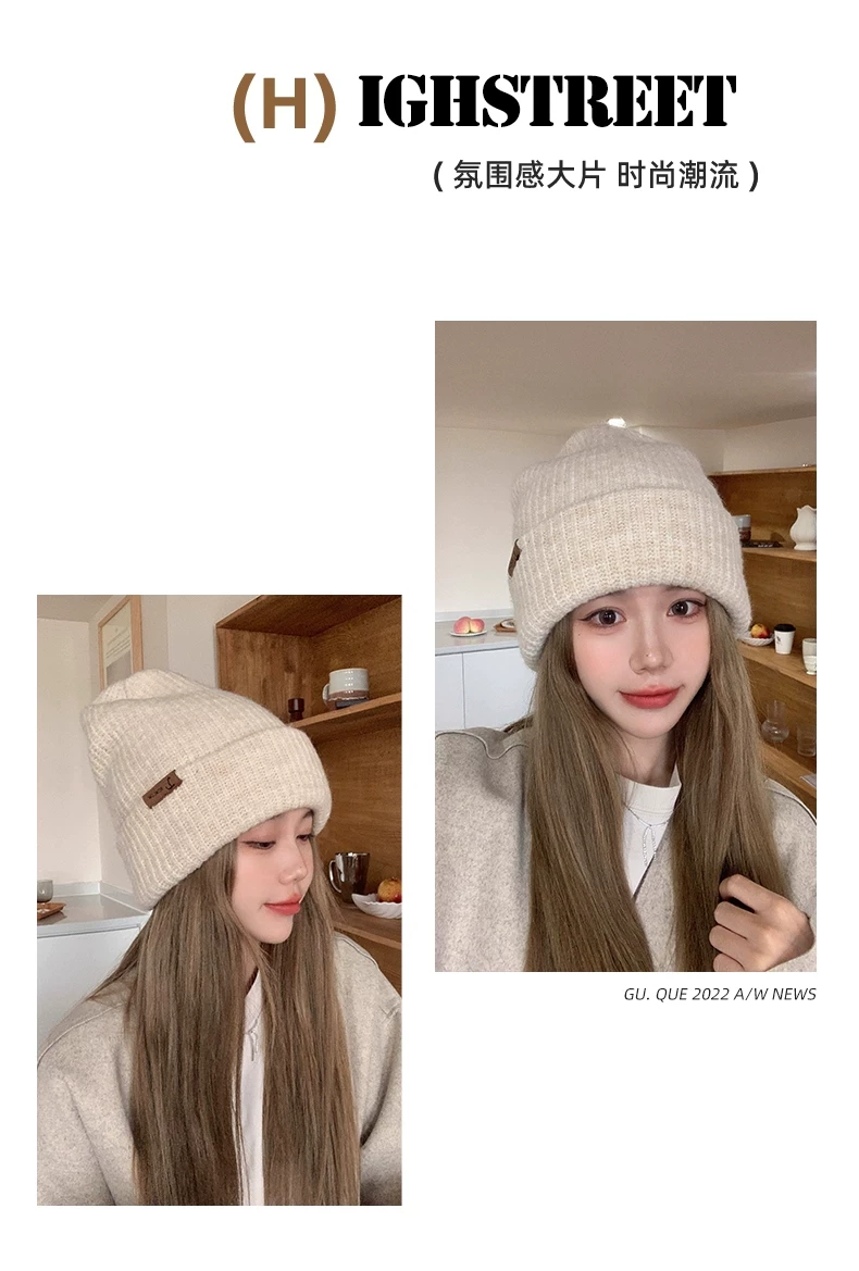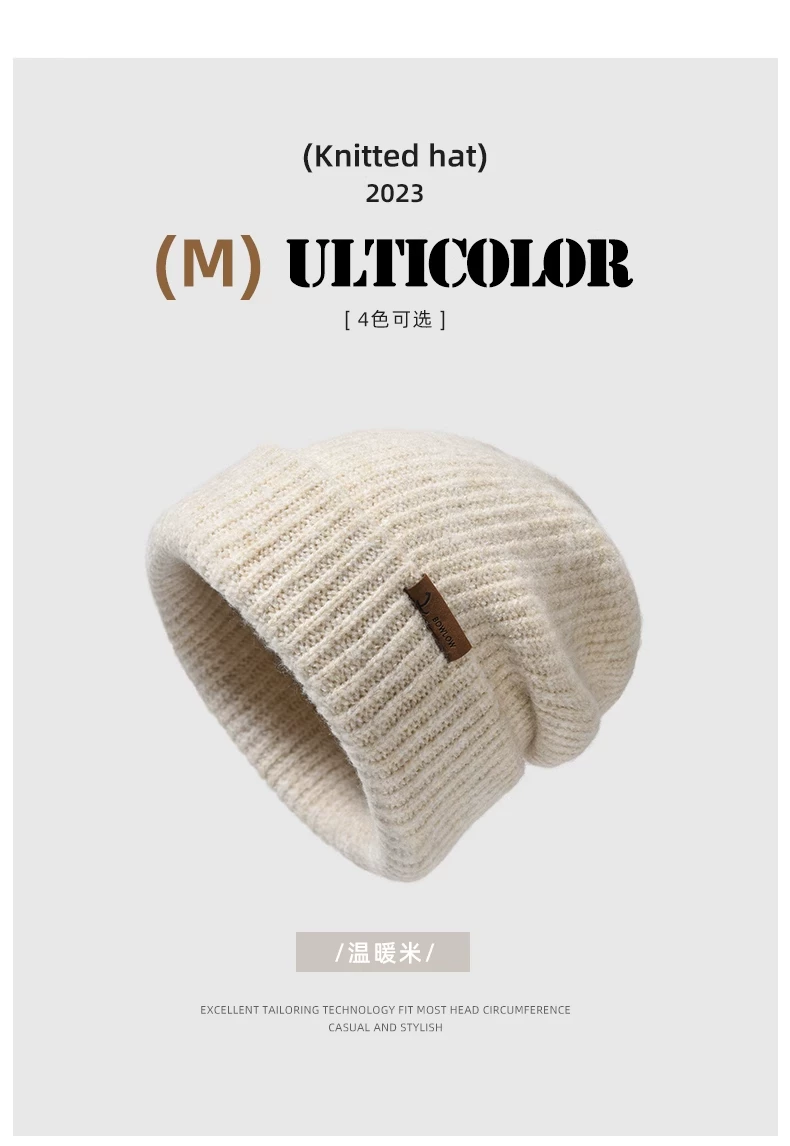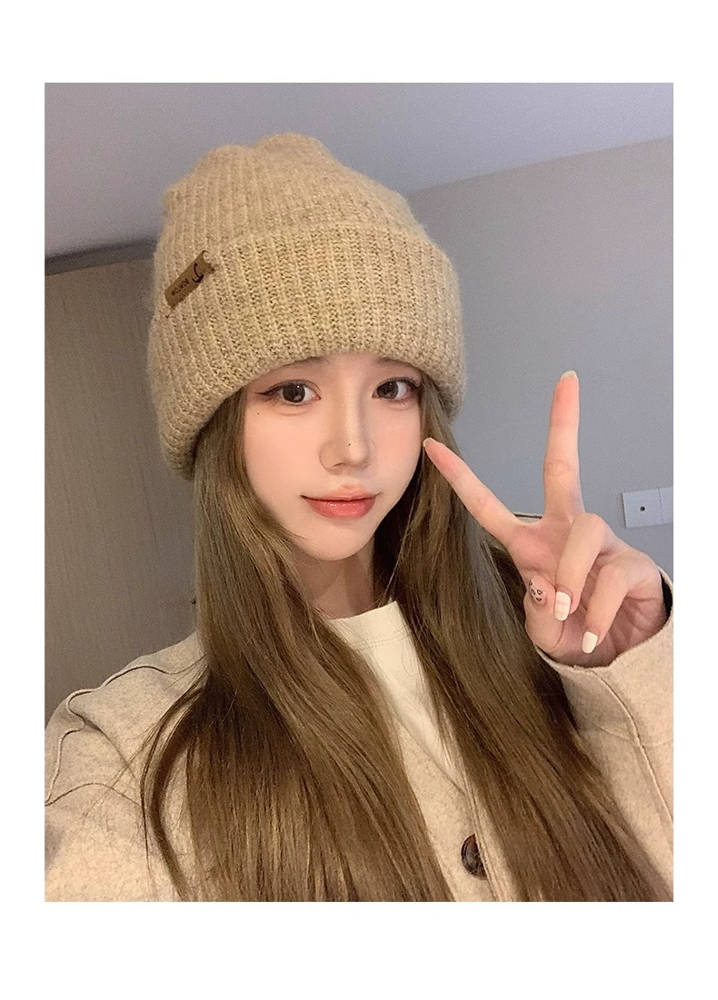 Mũ dệt kim có chu vi đầu lớn dành cho nữ, mũ đi bộ đường dài ngoài trời mùa thu đông, mũ ấm khi trượt tuyết, mũ dệt kim làm thon gọn khuôn mặt, chống lạnh, bảo vệ tai.