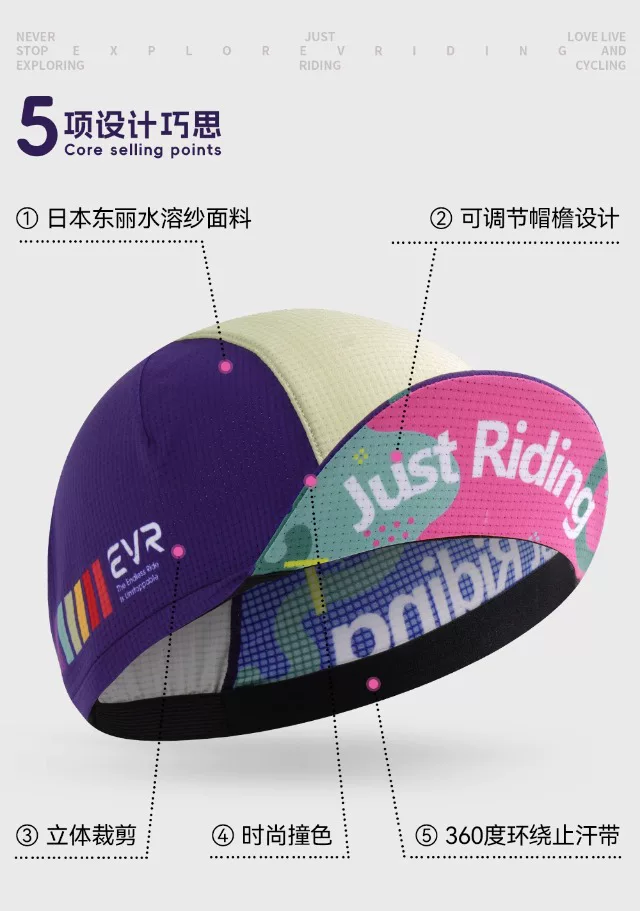 Mũ đi xe đạp EVR, chống gió, kháng khuẩn, thấm mồ hôi, thoáng khí, nhanh khô, mũ lót mũ bảo hiểm dành cho xe đạp đường trường