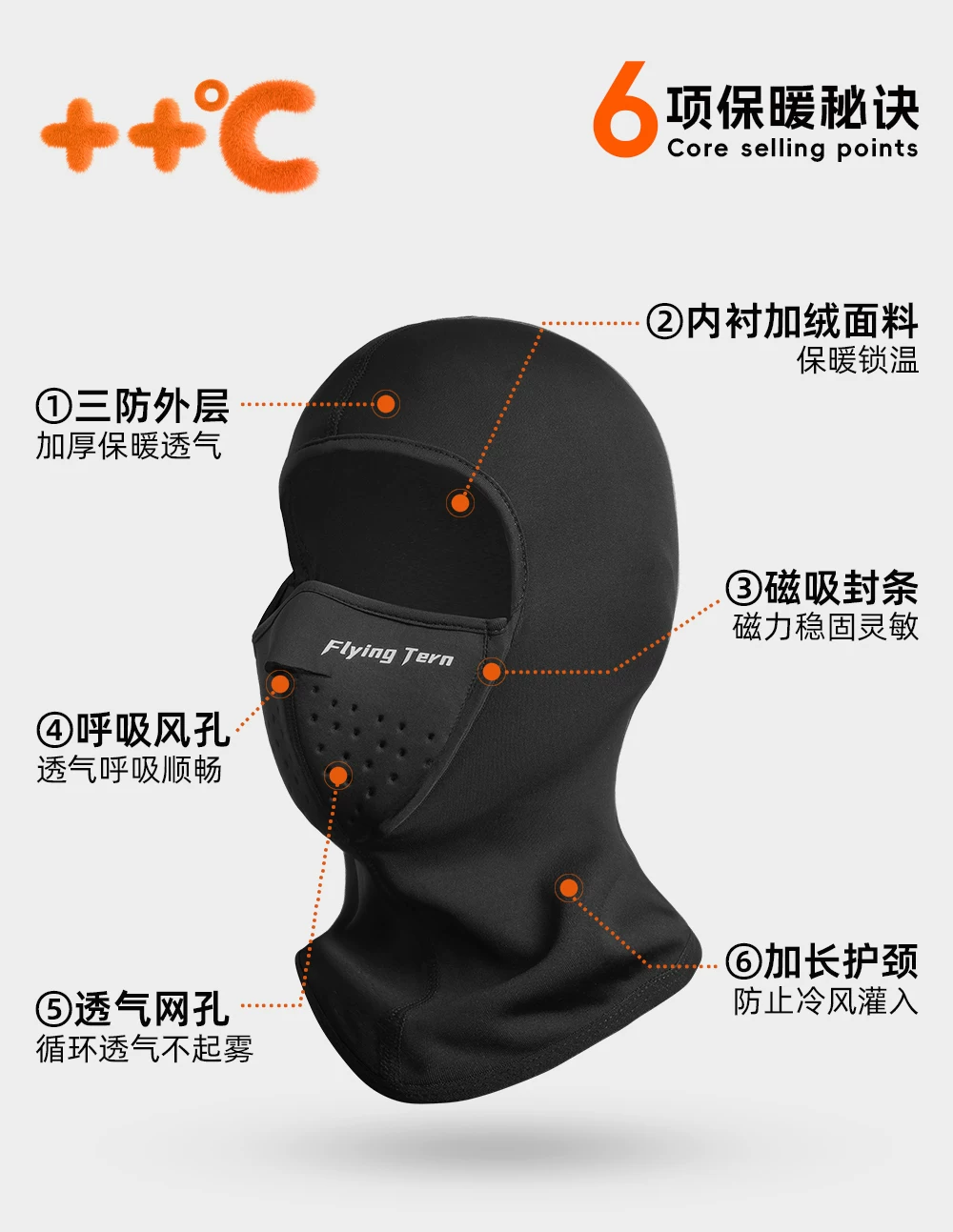 Mũ trùm đầu trượt tuyết từ tính, mặt nạ đi xe máy, bảo vệ toàn mặt, mùa thu đông, có lớp lông cừu giữ ấm