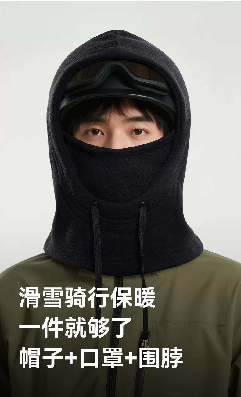 - Mũ trượt tuyết có mũ trùm đầu và khăn giữ ấm cổ tích hợp, lớp lót bên trong chống gió và chống lạnh, mũ balaclava cỡ lớn dành cho đi xe đạp ngoài trời.