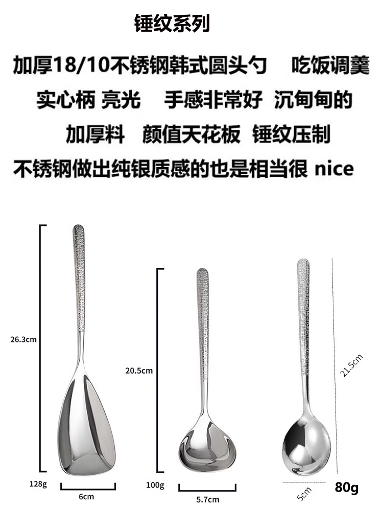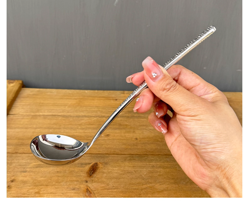 - Muỗng ăn bằng thép không gỉ 18/10 đầu tròn kiểu Hàn Quốc, cán dài, dùng cho món chính, súp