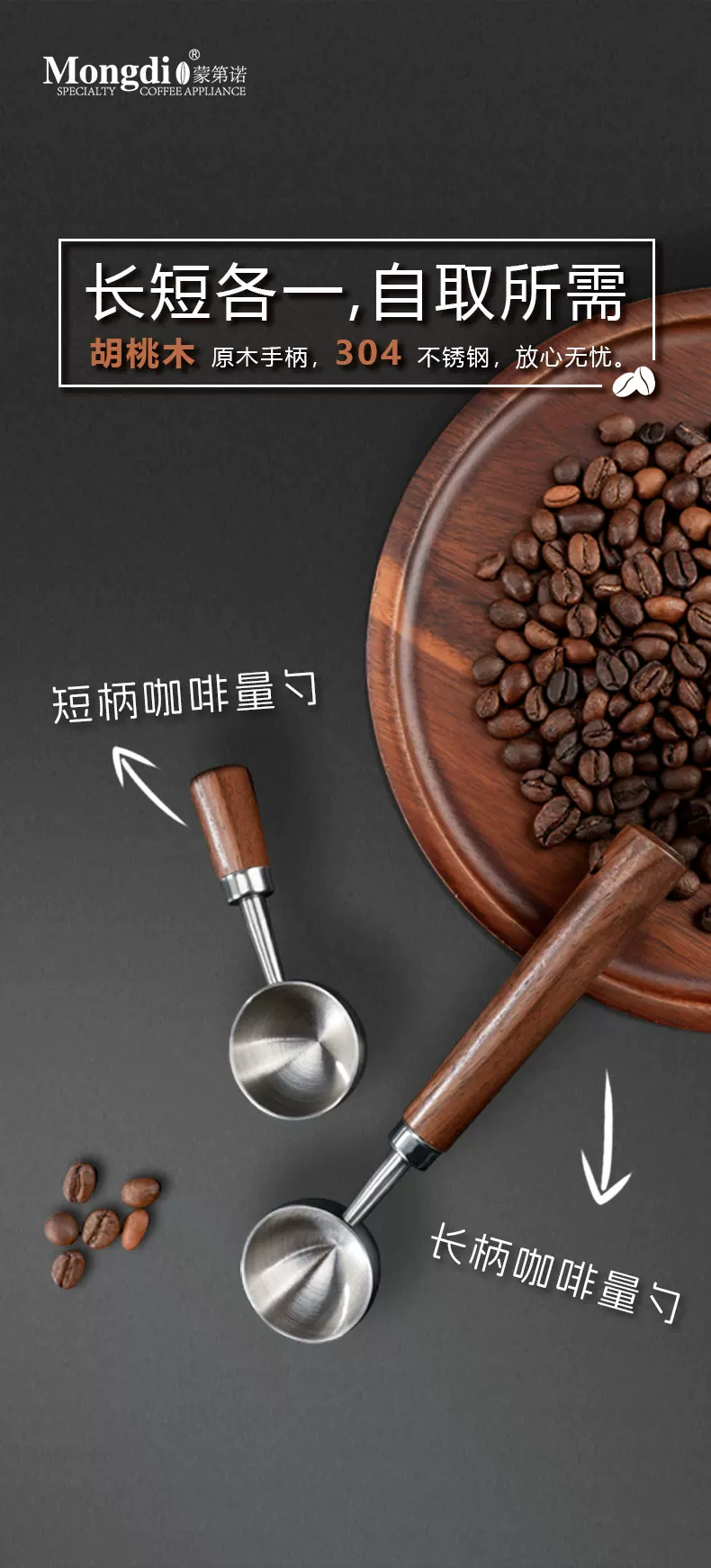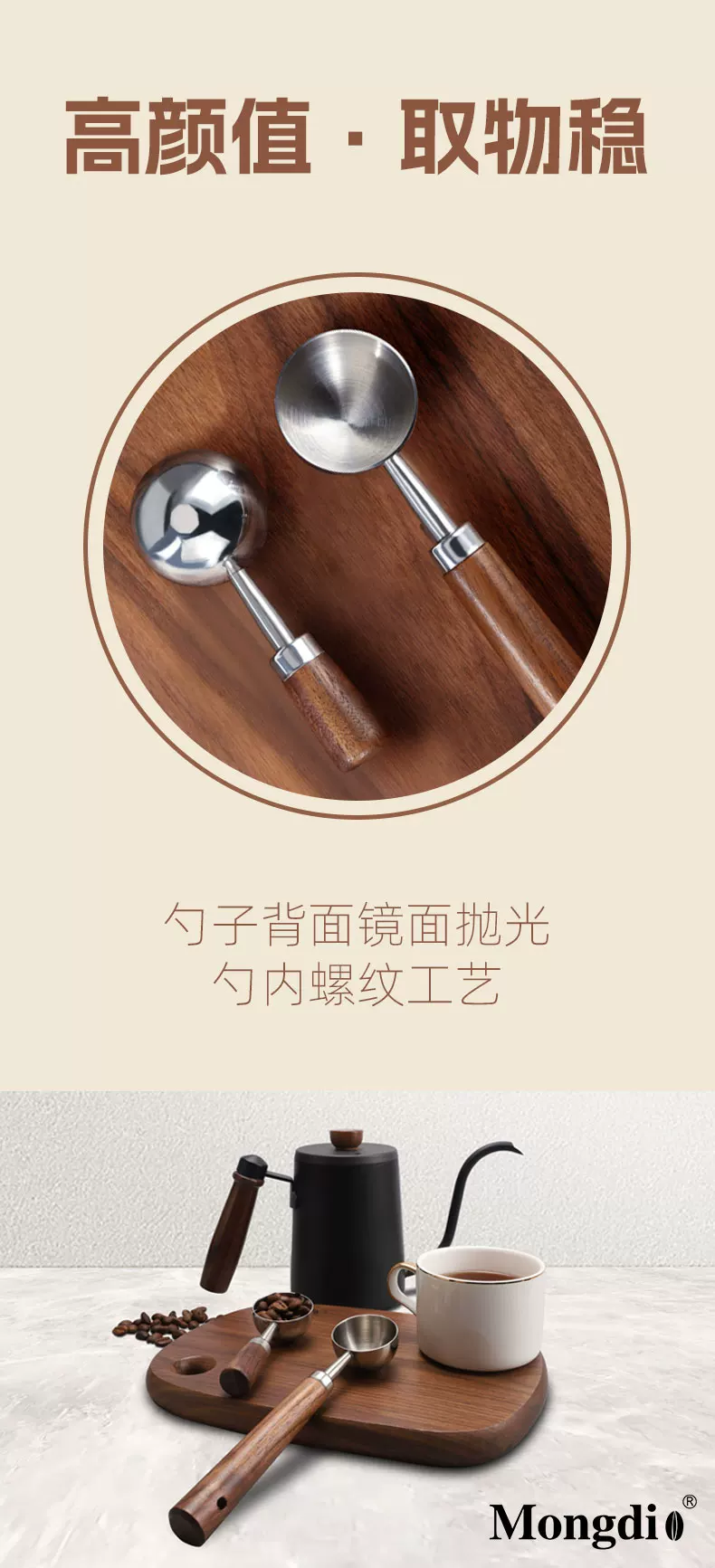 Muỗng cà phê Mongdio bằng thép không gỉ, muỗng đo bột cà phê, muỗng nhỏ đựng hạt cà phê, muỗng cao cấp tinh tế, cán dài, muỗng đặc biệt