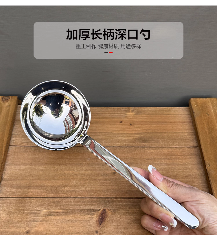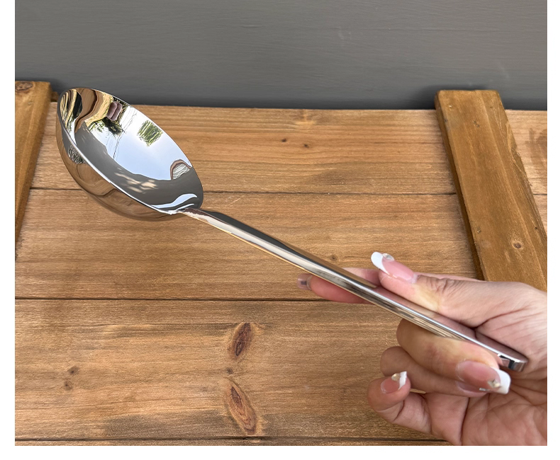 - Muỗng đầu tròn lớn cán dài bằng thép không gỉ 18/10 hạng nặng, muỗng súp lớn miệng sâu dày, muỗng cháo, muỗng phục vụ cơm và bột.