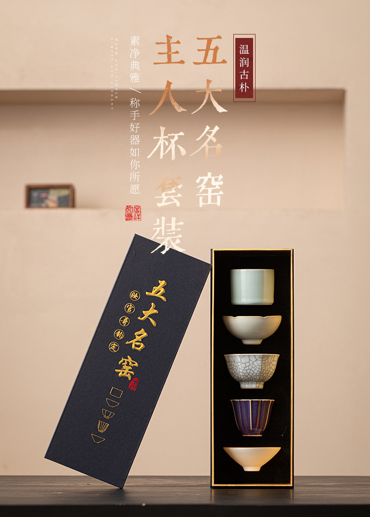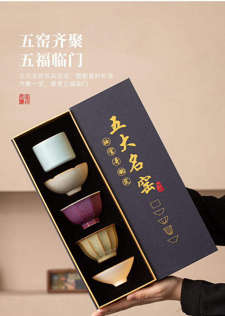 - Năm cốc trà lò nung nổi tiếng, cốc gốm chủ nhân, hộp quà tặng, Tết Trung thu, quà tặng người lớn tuổi, cốc đơn