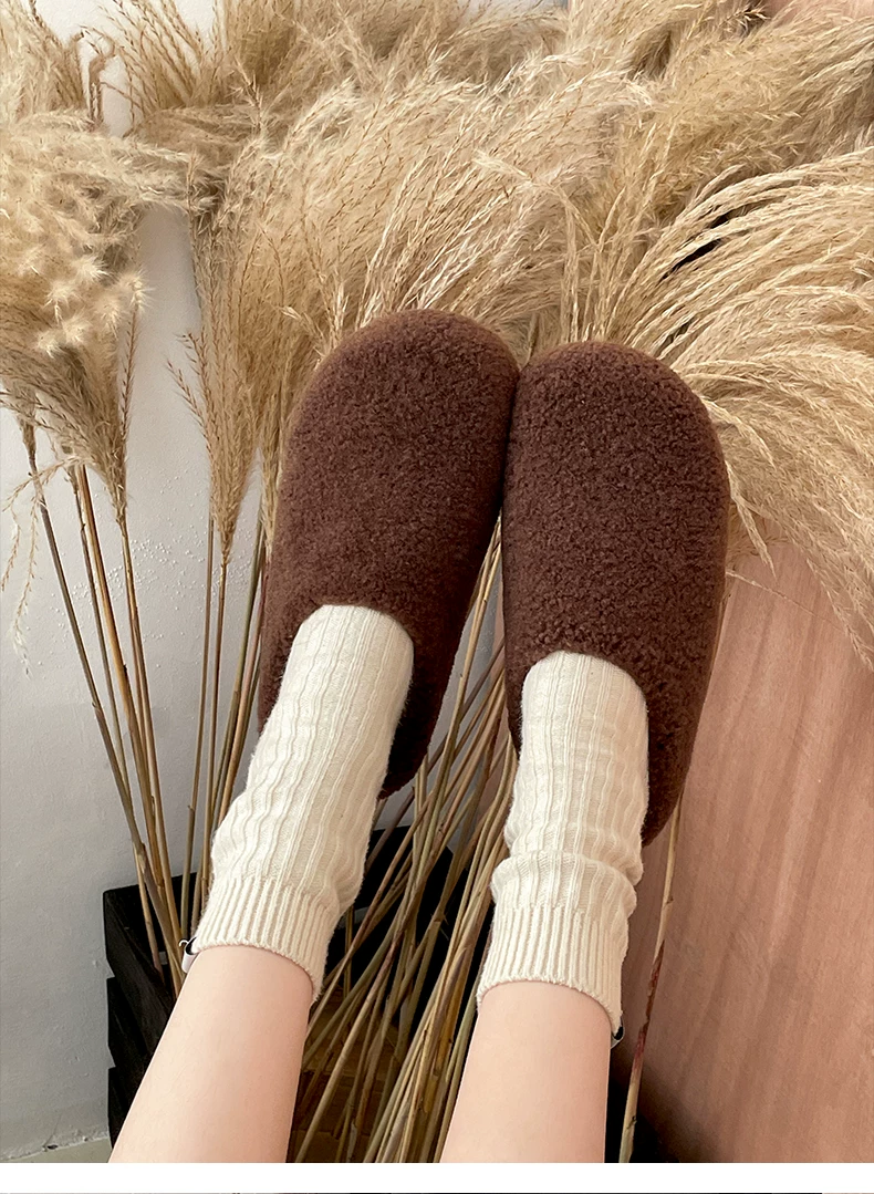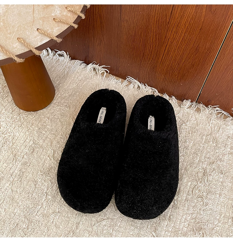 - Nan Zai Nan Fang Dép lông dày đế dày cao cấp dành cho nữ, thích hợp để mang ngoài trời, dép bông kiểu Birkenstock mũi kín mùa thu đông 2025 mới.