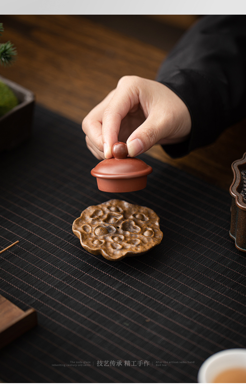 - Nắp sen tráng men nước sốt, Nắp gốm thô cổ điển kiểu Trung Quốc sáng tạo, nắp ấm trà, để trà đạo