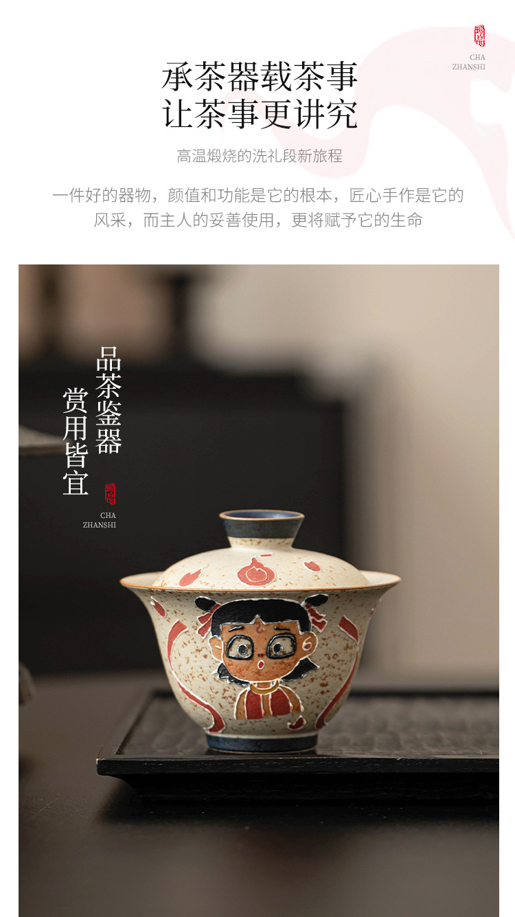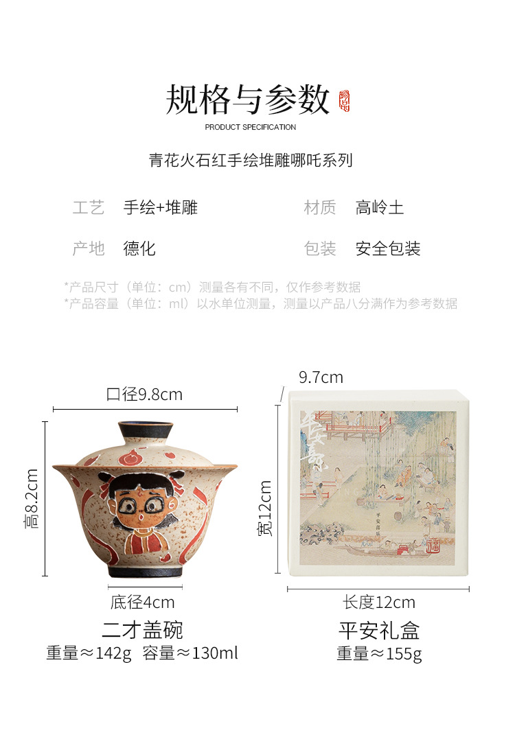 Nezha Naohai Bát có nắp Cốc trà Đá lửa trắng xanh Gốm sứ đỏ Bát trà nhị tài có nắp Bộ pha trà Kung Fu lớn đơn