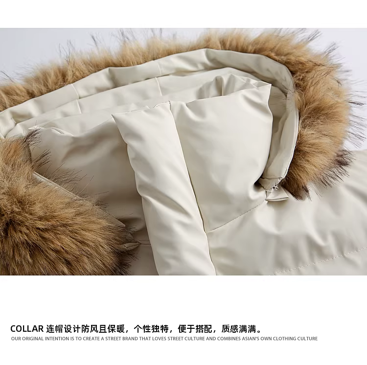 Ngộ Không có sẵn áo khoác cotton dày có mũ, viền lông thú thời trang mùa đông dành cho nam và nữ, áo khoác cotton đa năng ấm áp kiểu retro dành cho cặp đôi.