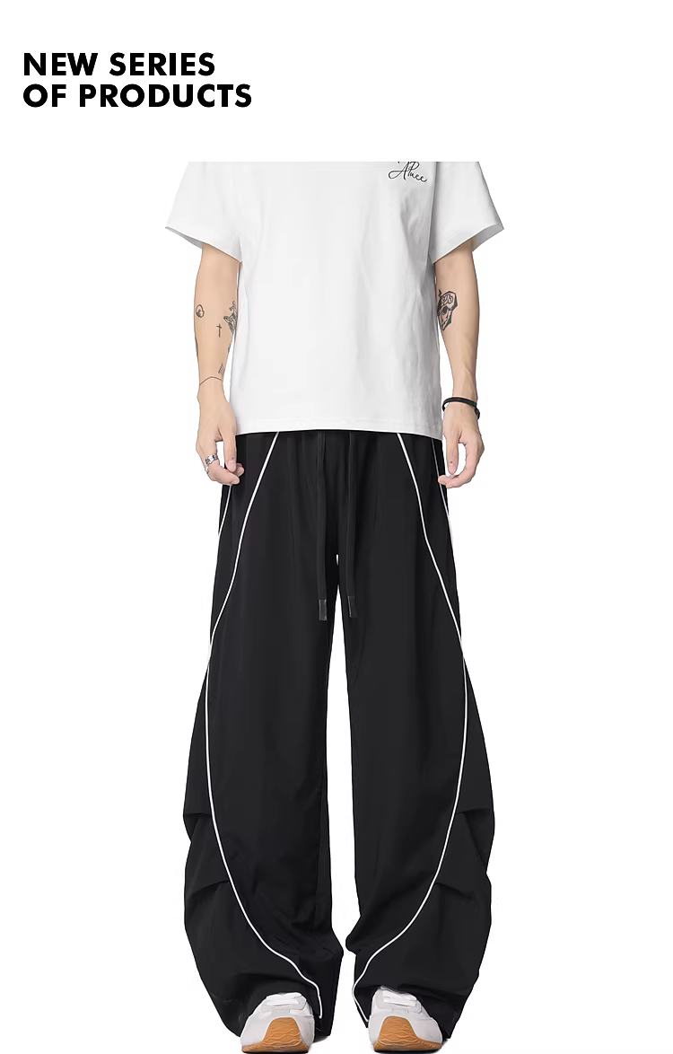 - Ngộ Không có sẵn quần cargo nam kiểu Mỹ có dải phản quang thể thao, quần ống đứng thời trang đường phố hip-hop, phong cách thường ngày.