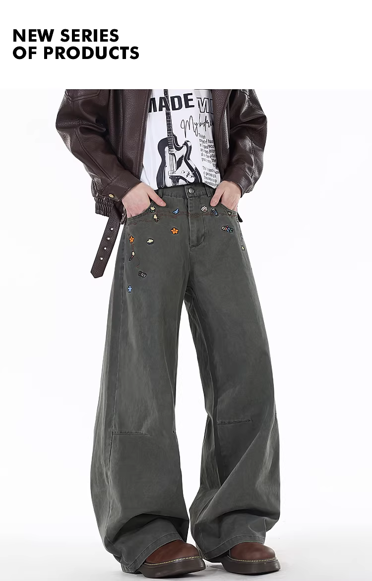 - Ngộ Không có sẵn quần cargo ống đứng thêu phong cách Mỹ thời thượng dành cho nam và nữ, quần ống rộng, thoải mái, đa năng.