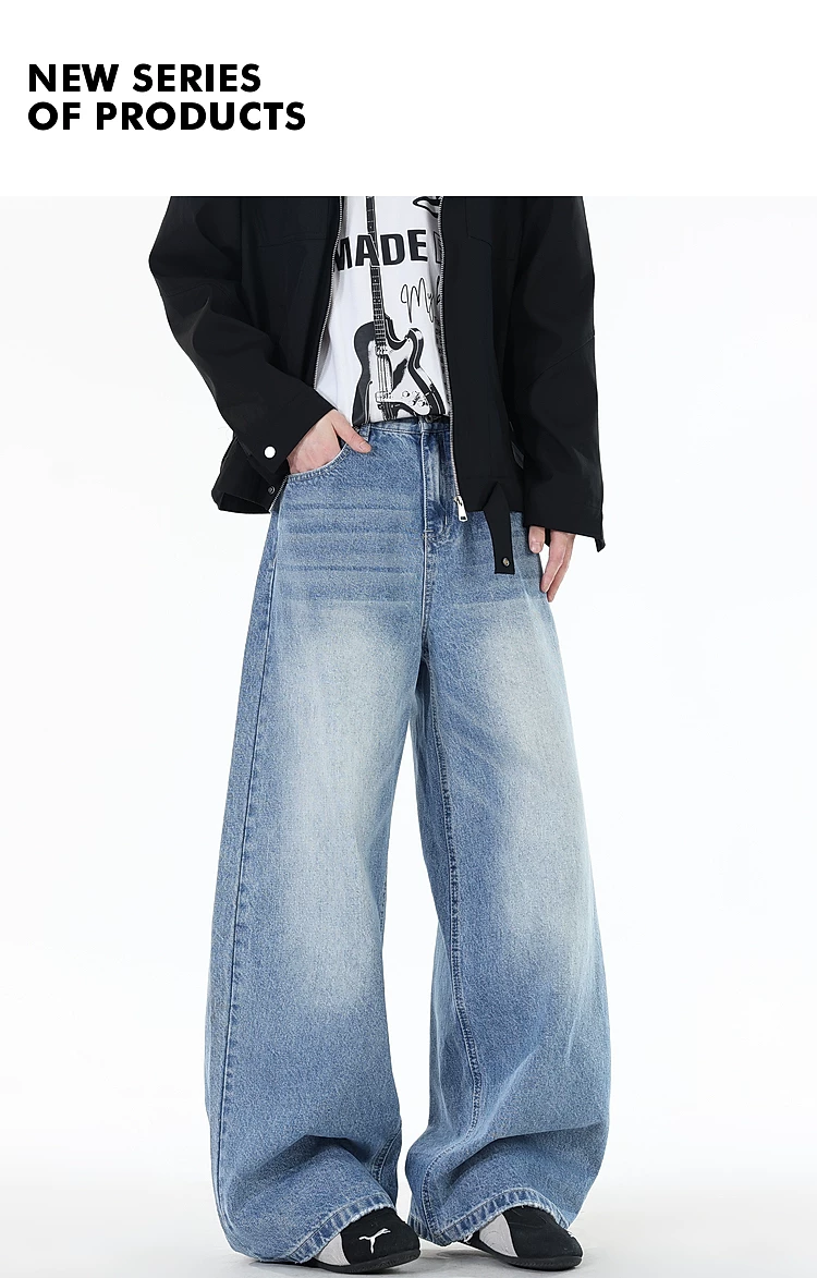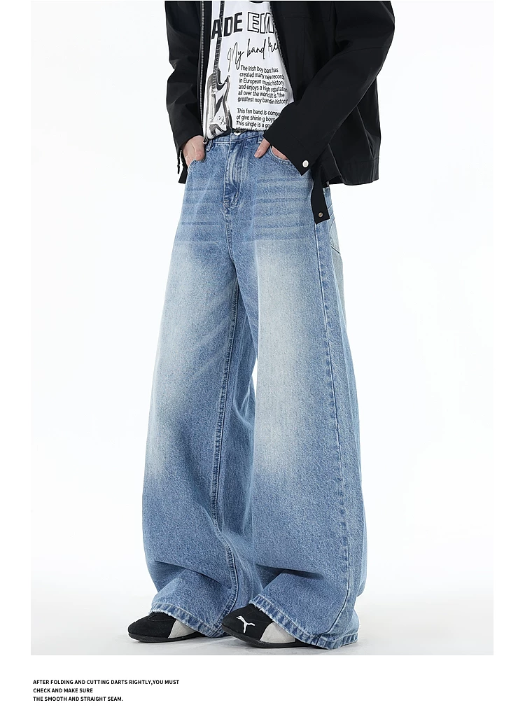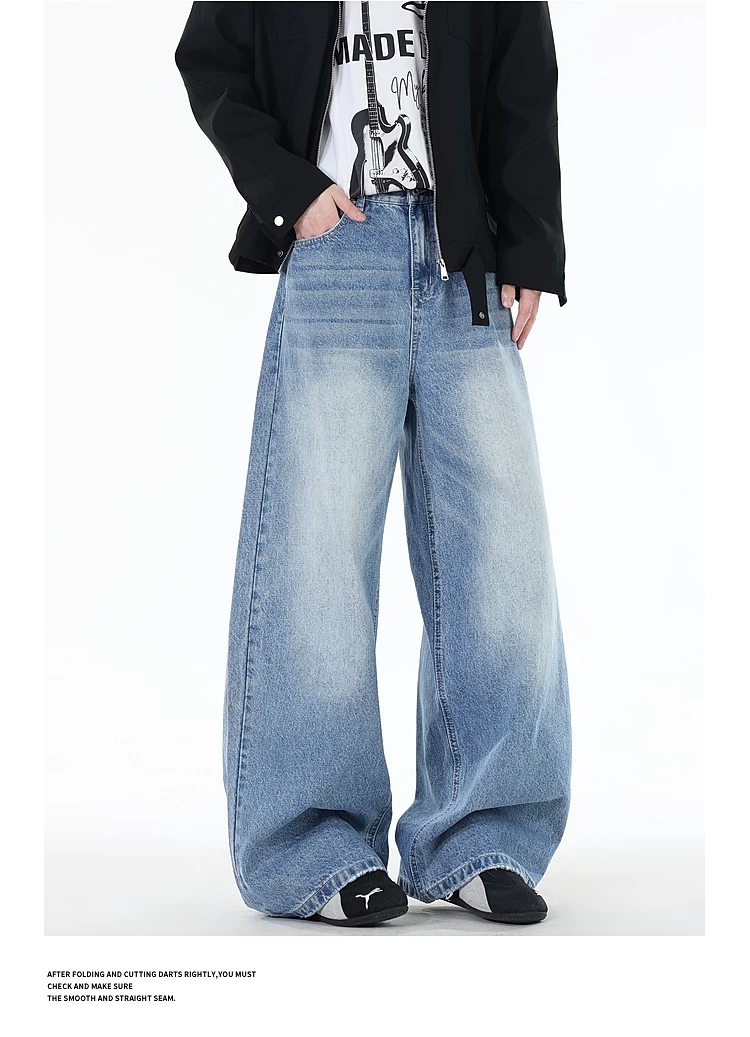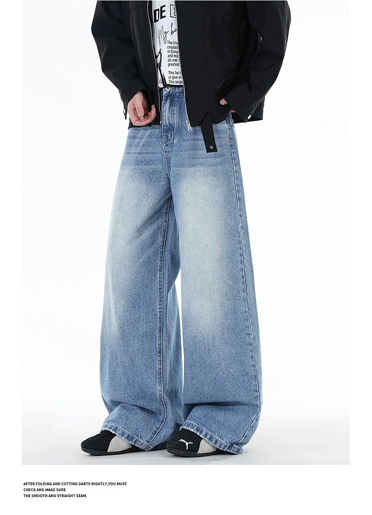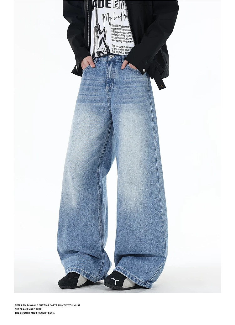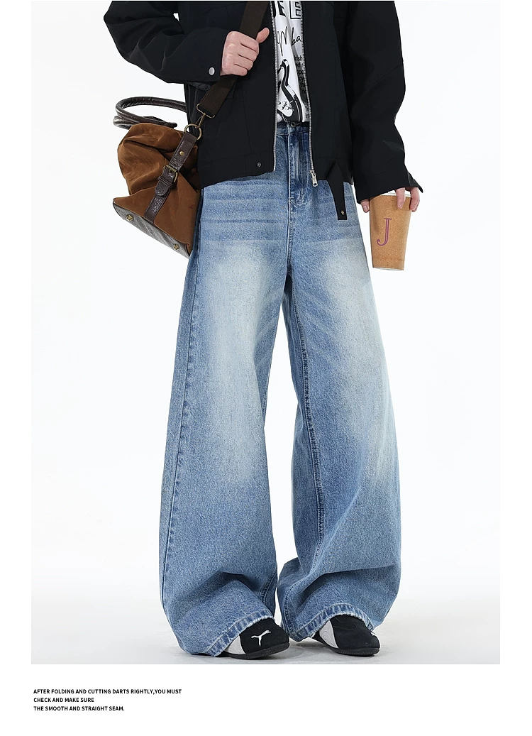 - Ngộ Không có sẵn quần jean nam kiểu Mỹ, phong cách vintage, màu sáng, đã qua xử lý, dáng rộng, ống thẳng, đa năng, dài.