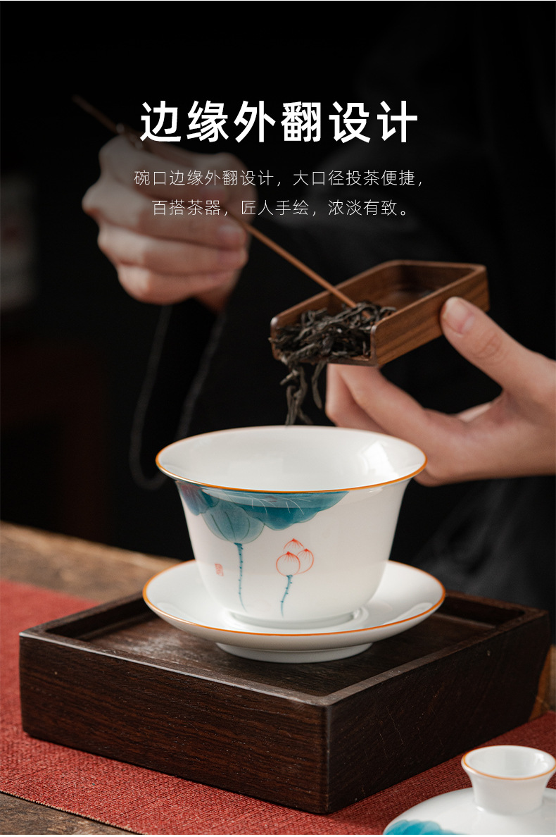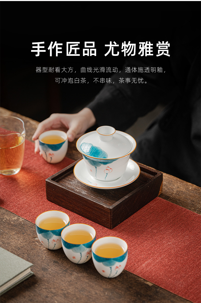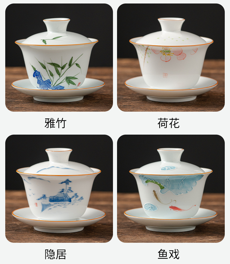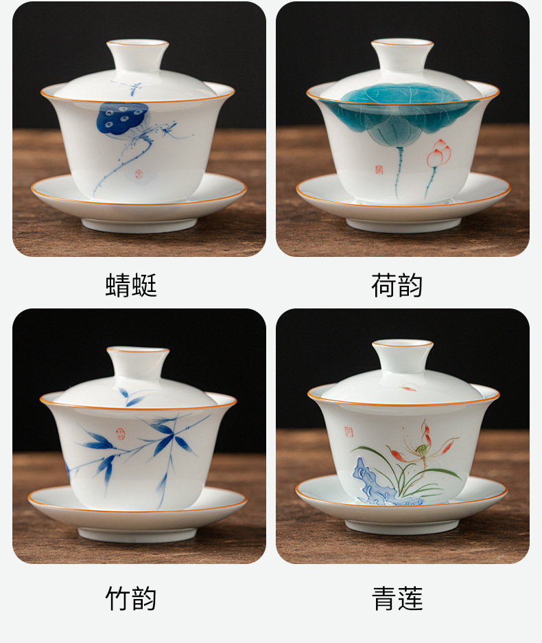 Ngọc cừu vẽ tay treo nắp bát tách trà bát pha trà sứ trắng lơ lửng tam tài bát trà bộ trà gốm sứ đơn