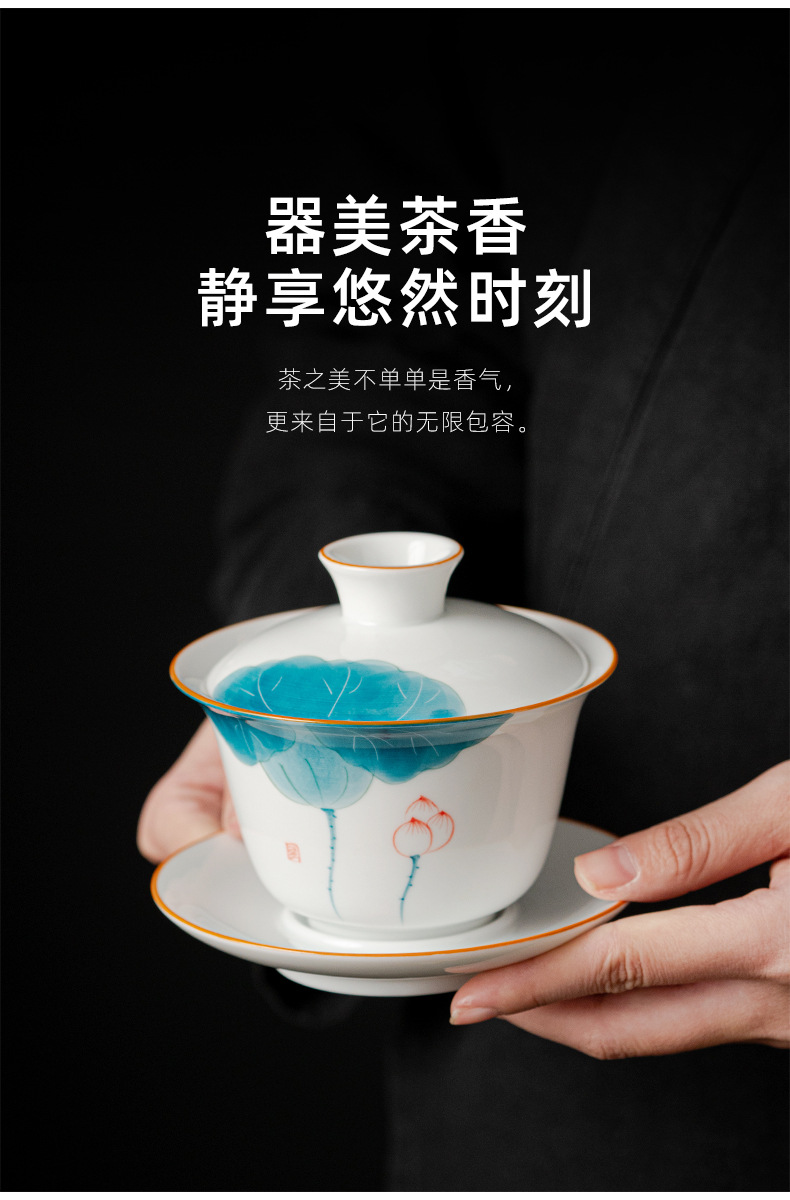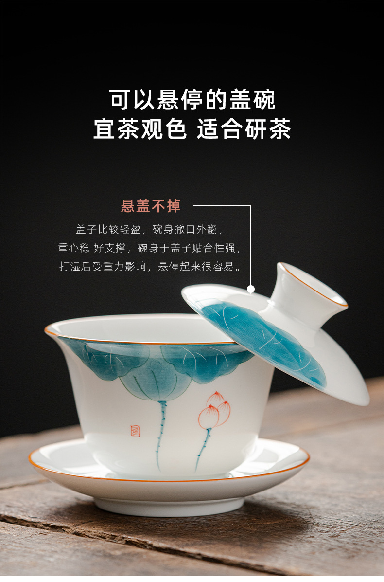 - Ngọc cừu vẽ tay treo nắp bát tách trà bát pha trà sứ trắng lơ lửng tam tài bát trà bộ trà gốm sứ đơn