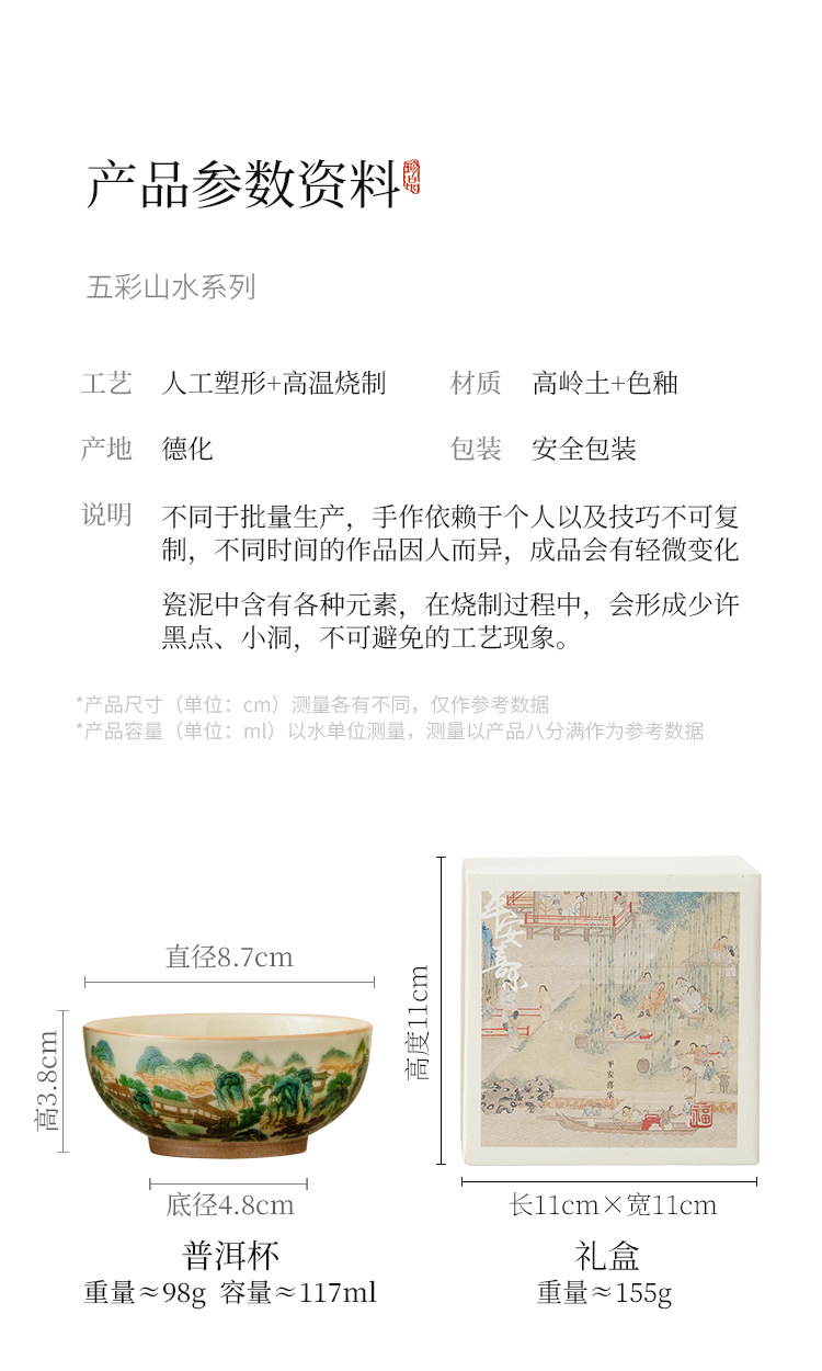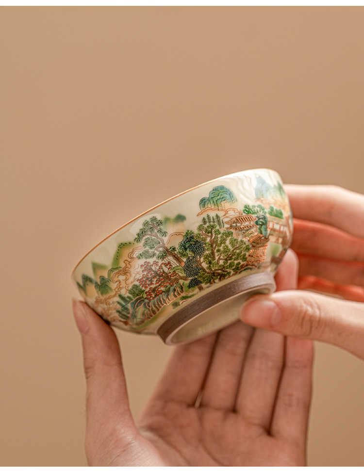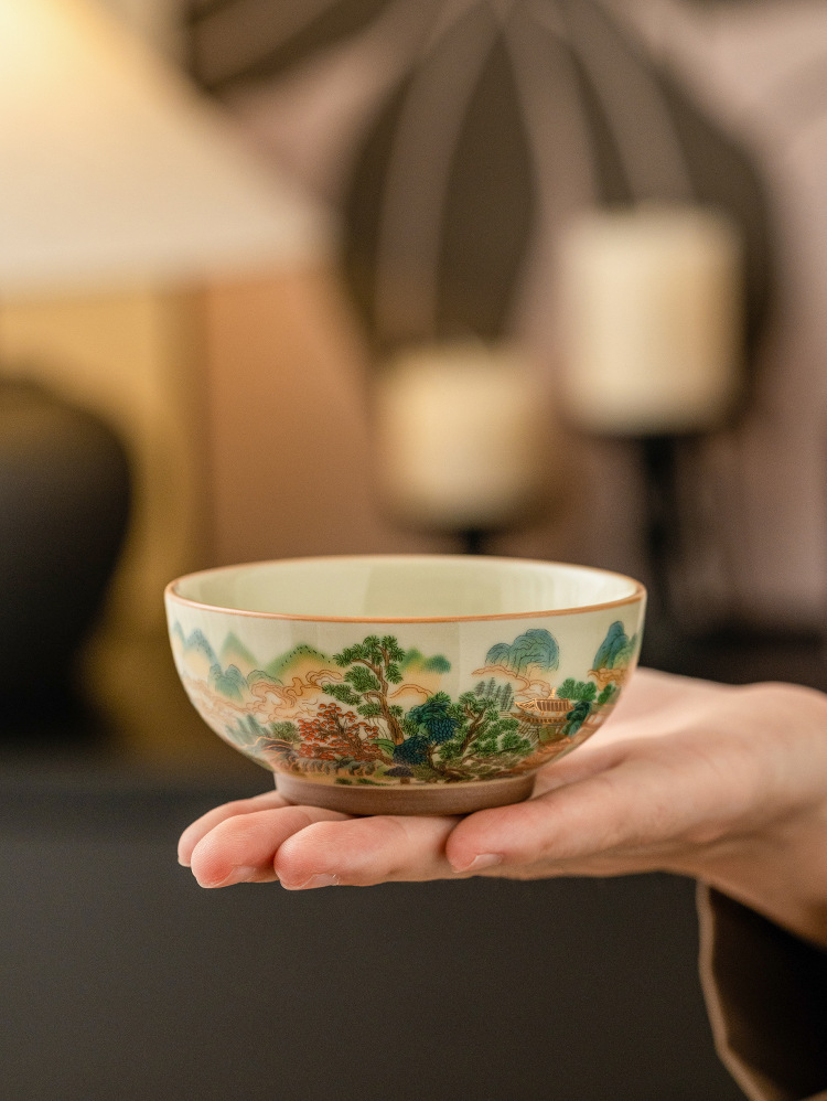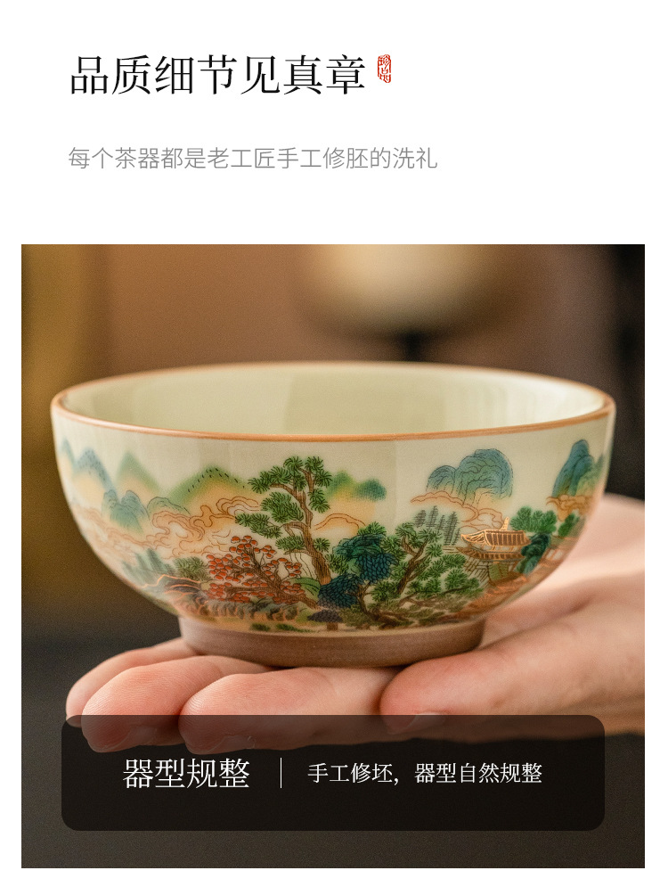 - Nhà máy Cốc phong cảnh đầy màu sắc Cốc trà Pu'er dung tích lớn Cốc chủ gốm sứ Bộ trà Kung Fu Trung Quốc Cốc trà
