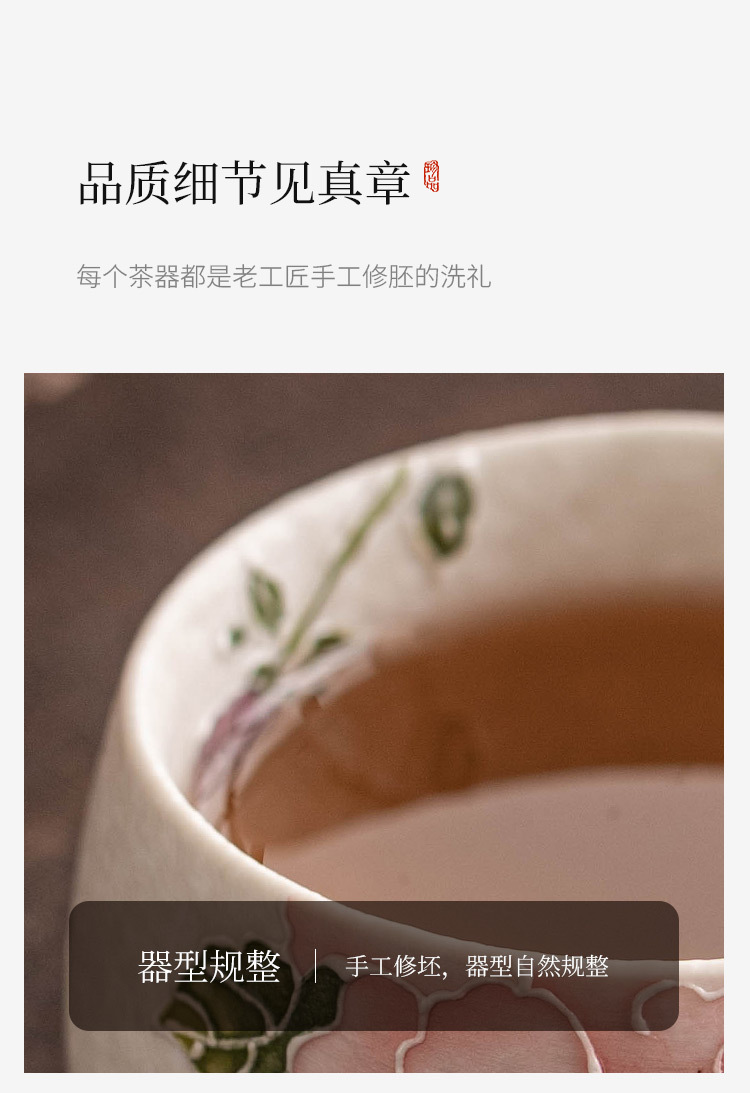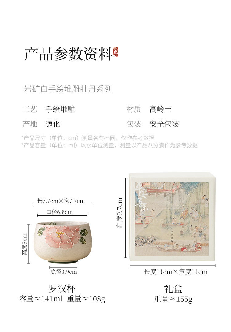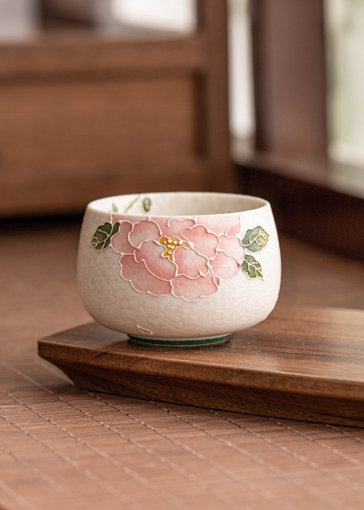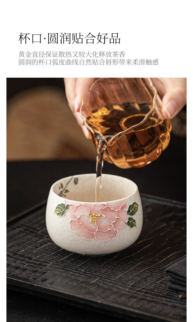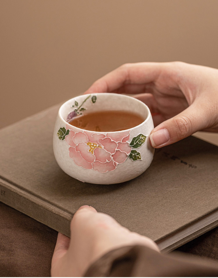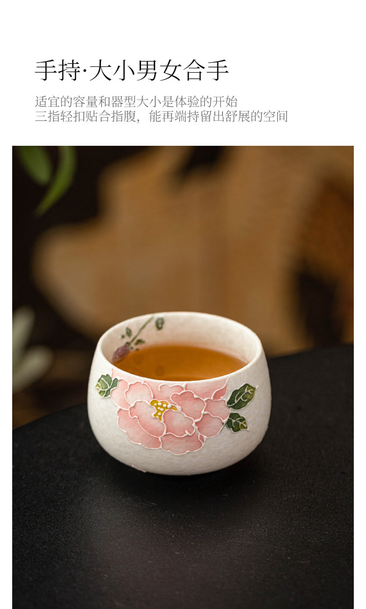 - Nhà máy đá mỏ chủ cốc vẽ tay đống hoa mẫu đơn chạm khắc cốc La Hán cốc tinh xảo chuyên dụng cá nhân bộ trà gốm sứ Kung Fu